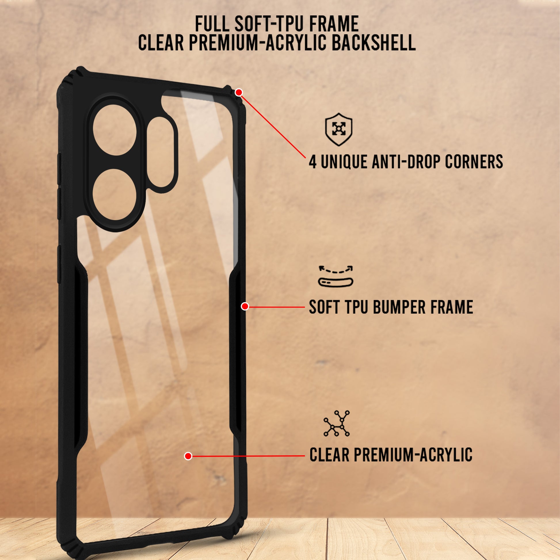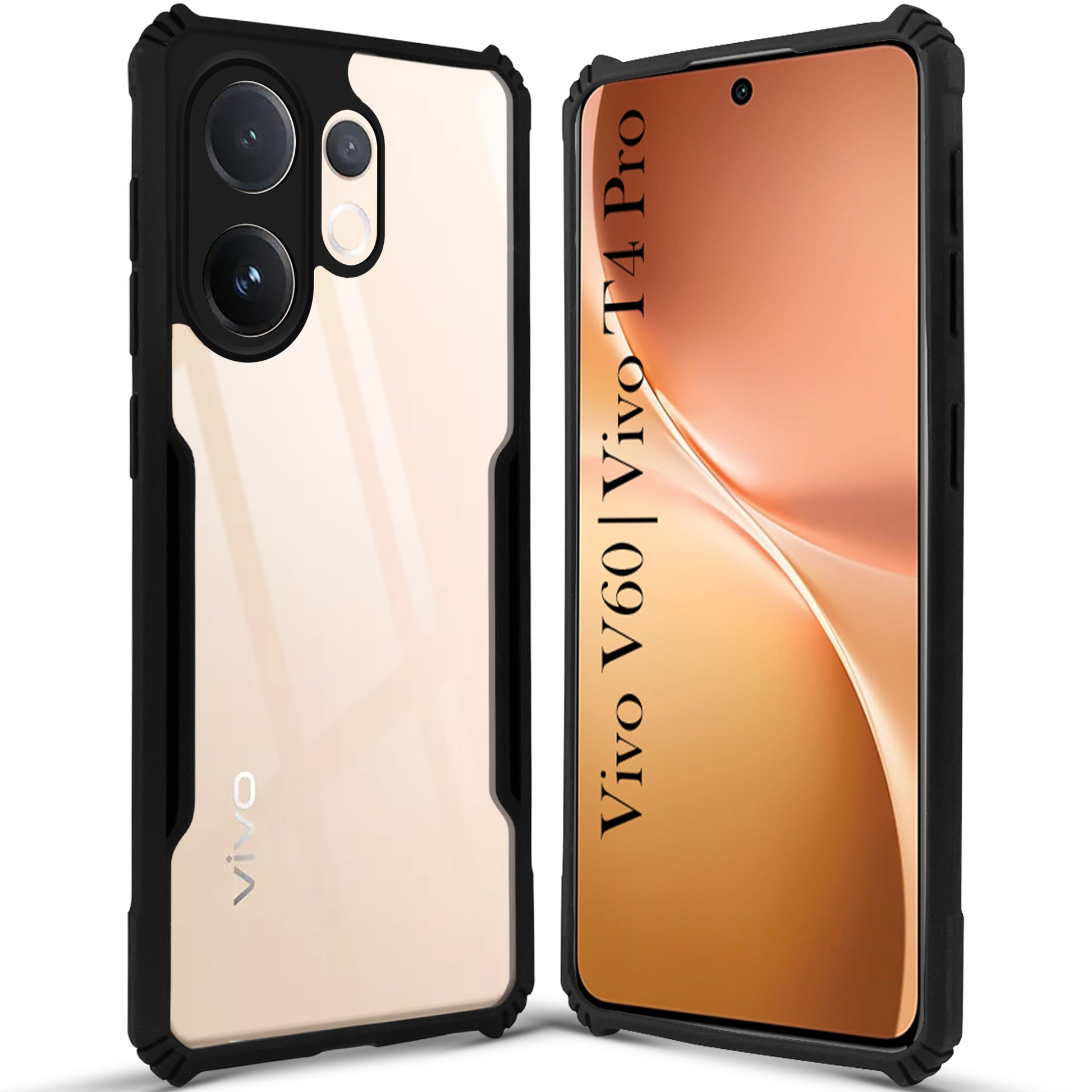 For Vivo V60 | Vivo T4 Pro Back Cover Case ( Shockproof with Polycarbonate Clear Panel | Professional Black)