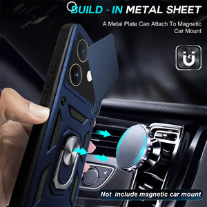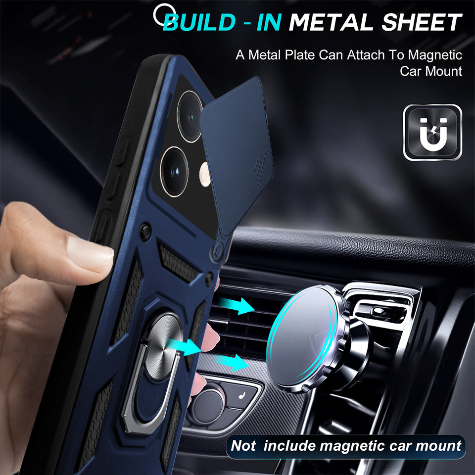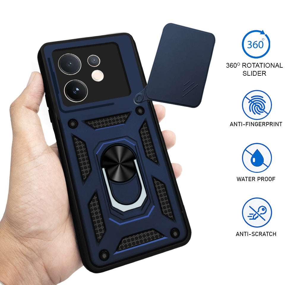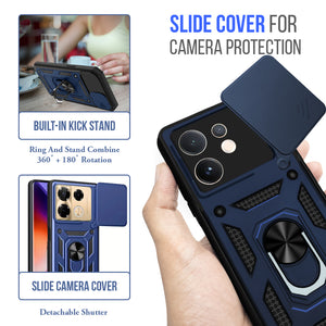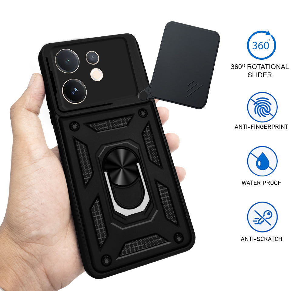 For Vivo V60 | Vivo T4 Pro Back Cover Case (Sliding Shutter Camera Protection | Polycarbonate |Ring Holder Kickstand)
