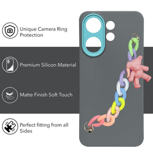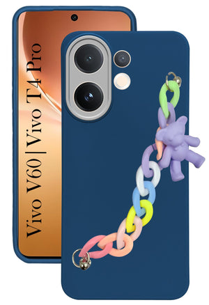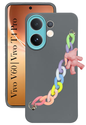 For Vivo V60 | Vivo T4 Pro Back Cover Case ( Wrist Hanging Chain | Teddy Bracelet Charms | Dual Color Matte Finish | Full Camera Protection | Sleek and Professional)