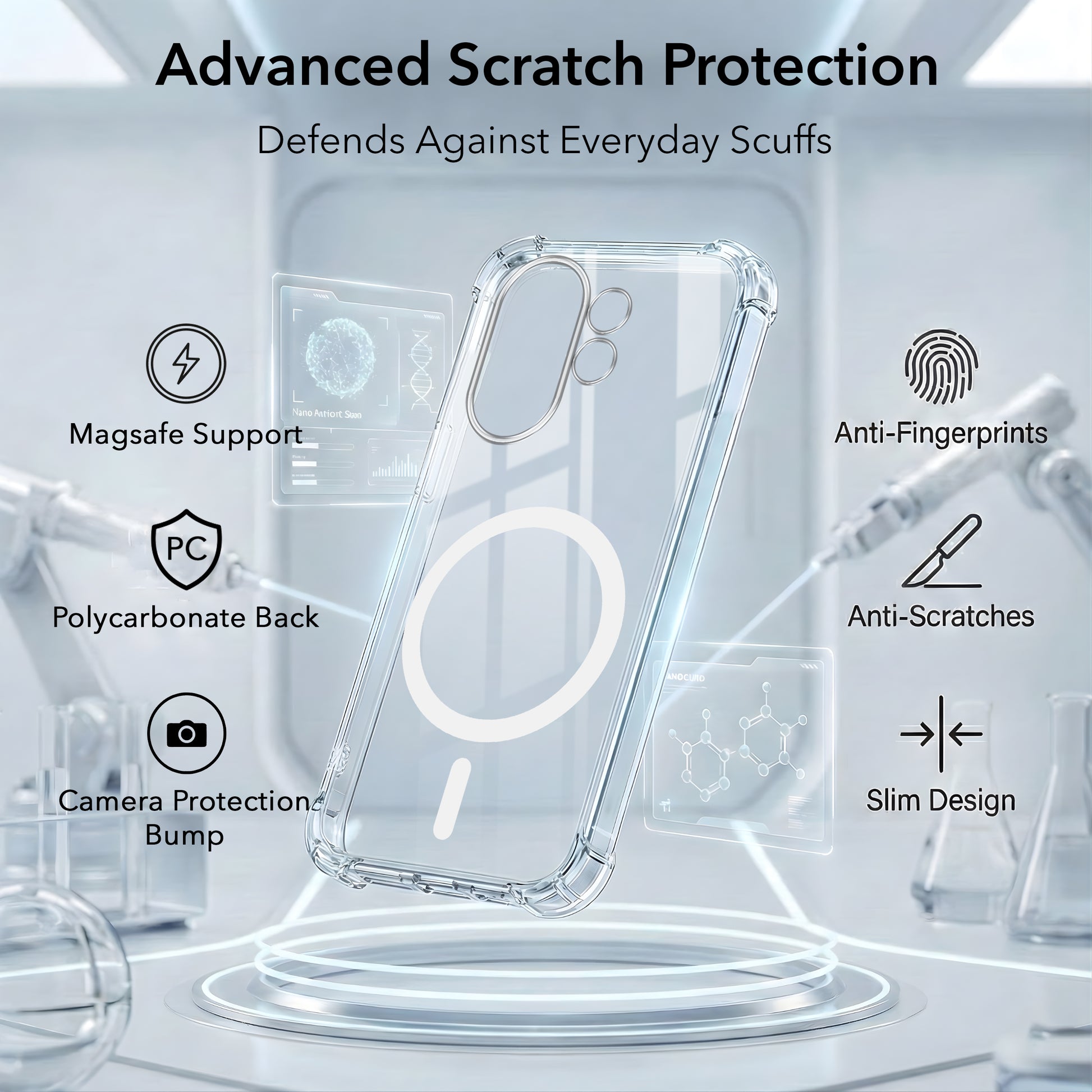 For Vivo V60 | Vivo T4 Pro Back Cover Shockproof Crystal-Clear (Magsafe Wireless Support | Drop & Camera Protection | Hard Polycarbonate)