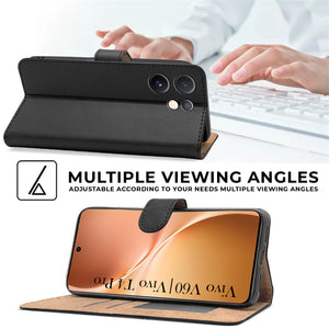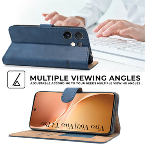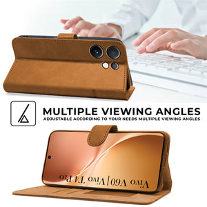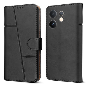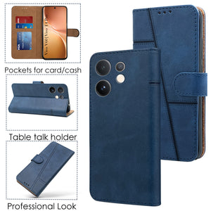 For Vivo V60 | Vivo T4 Pro Flip Cover Case ( Stitched Leather with Magnetic Closure)