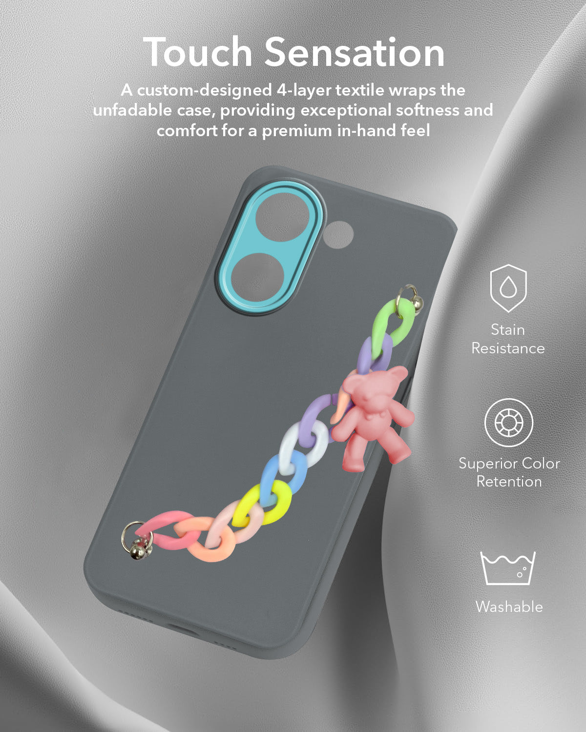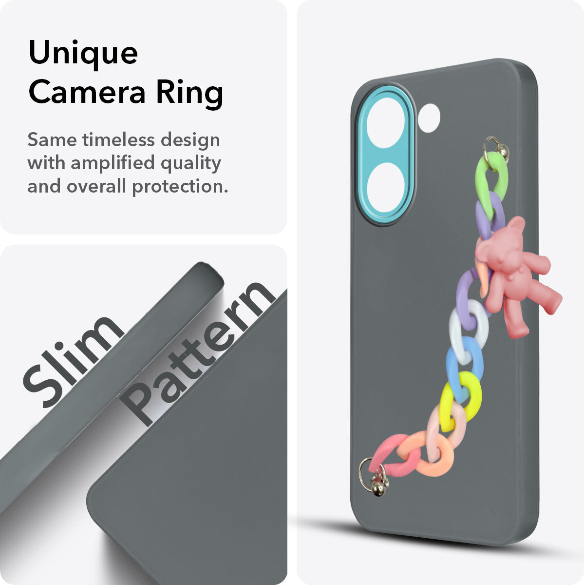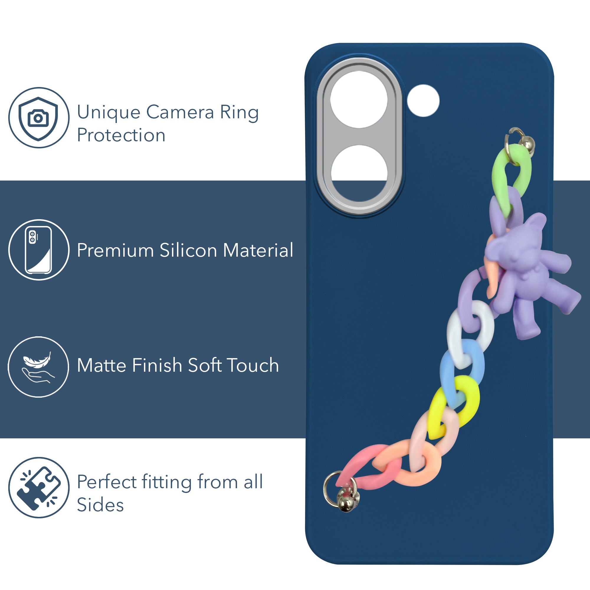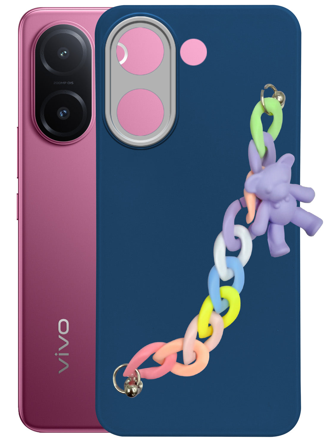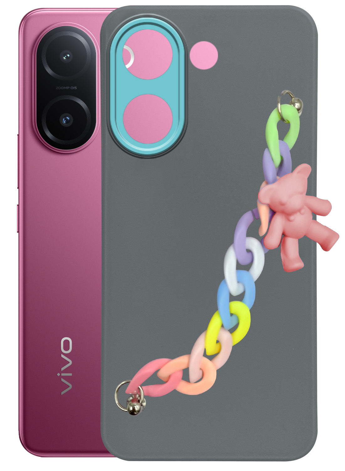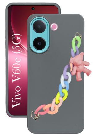 For Vivo V60e Back Cover Case (Matte Finish |Wrist Hanging Chain | Teddy Bracelet Charms | Full Camera Protection)