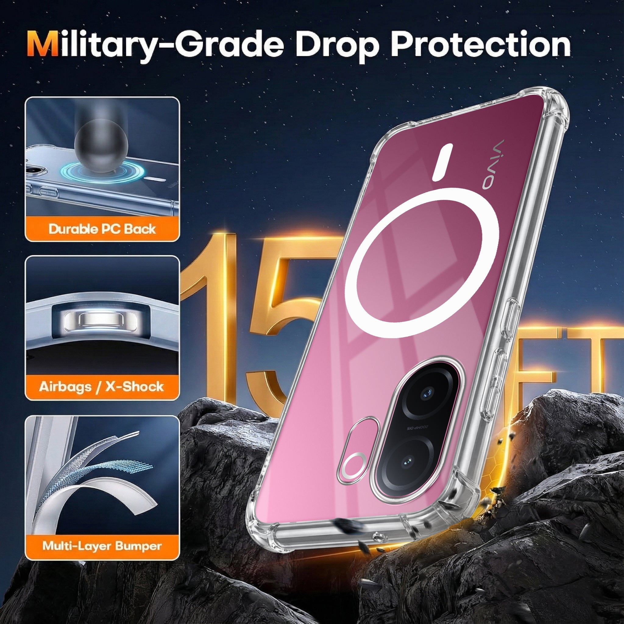 For Vivo V60e Back Cover Shockproof Crystal-Clear (Magsafe Wireless Support | Drop & Camera Protection | Hard Polycarbonate)