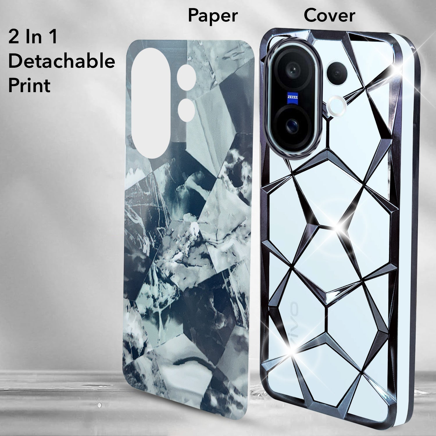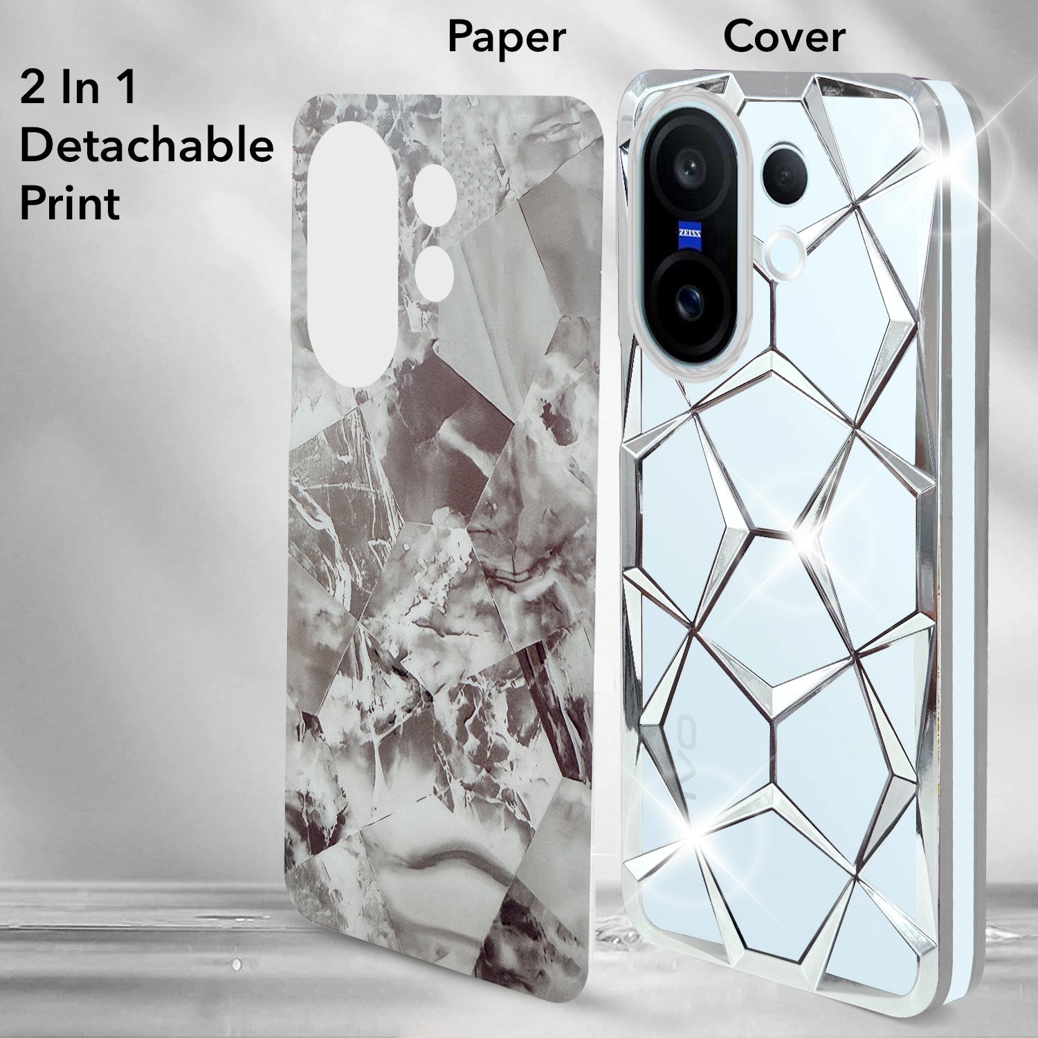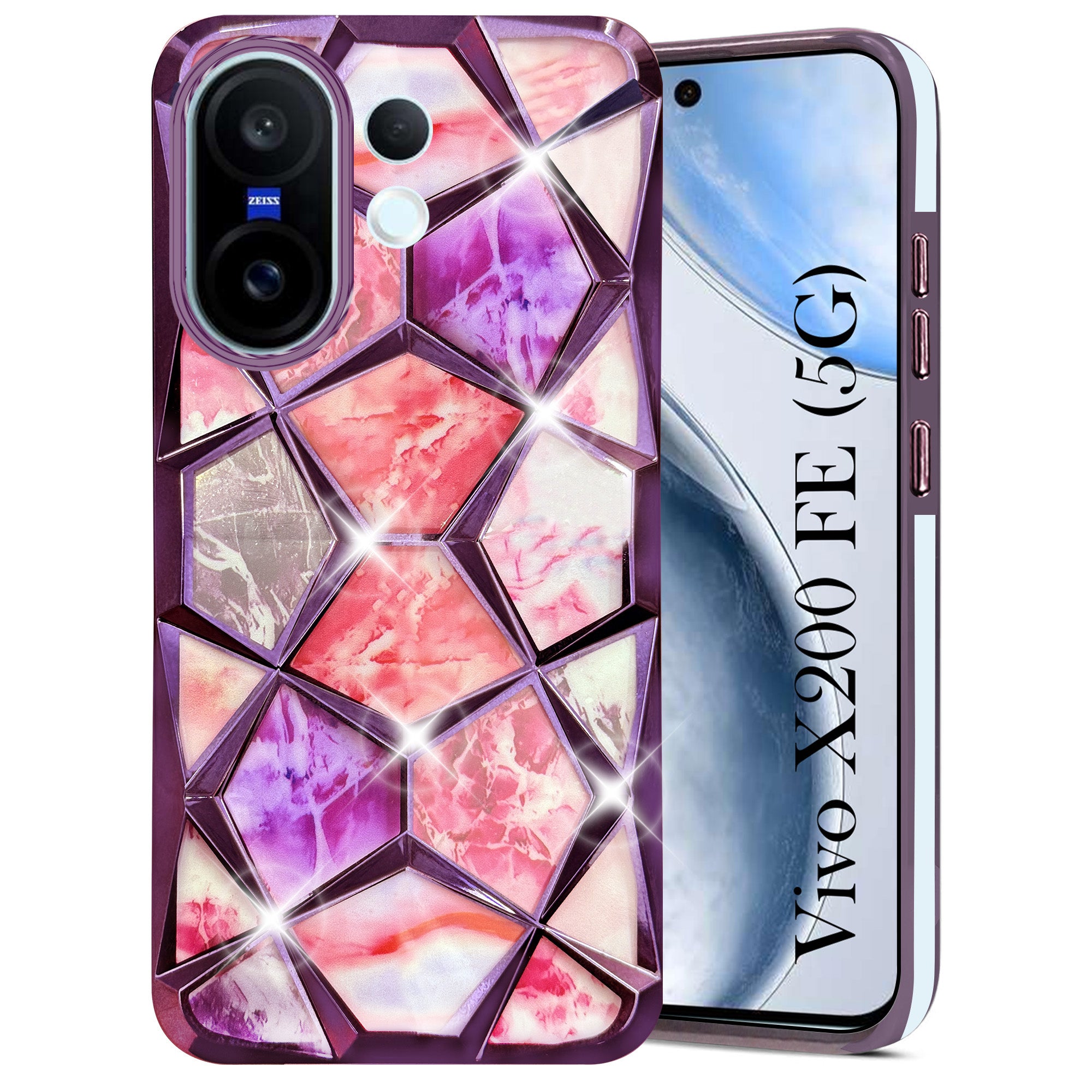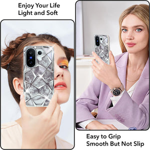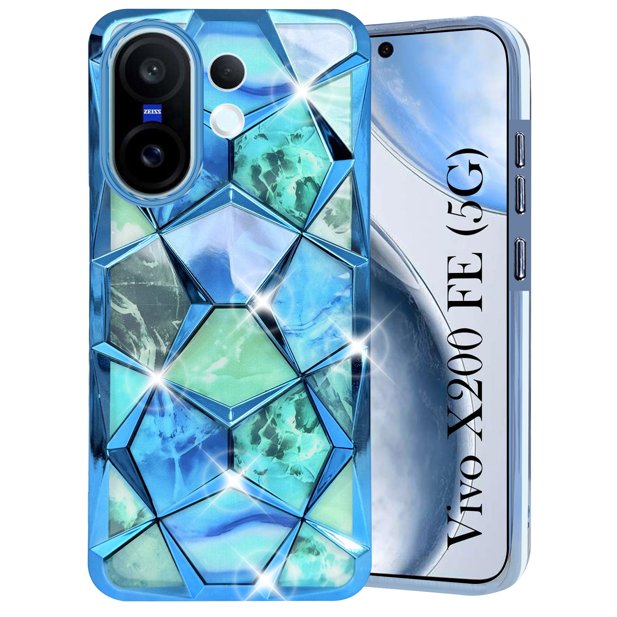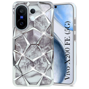 For Vivo X200 FE Back Cover Case 3D Silicone Compatible (Dual Design Glitter Sparkle and Detachable Diamond Print Case | Soft and Flexible)