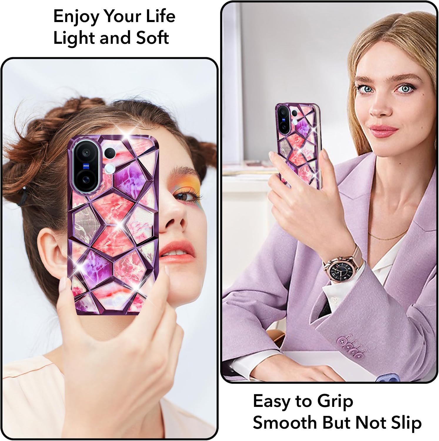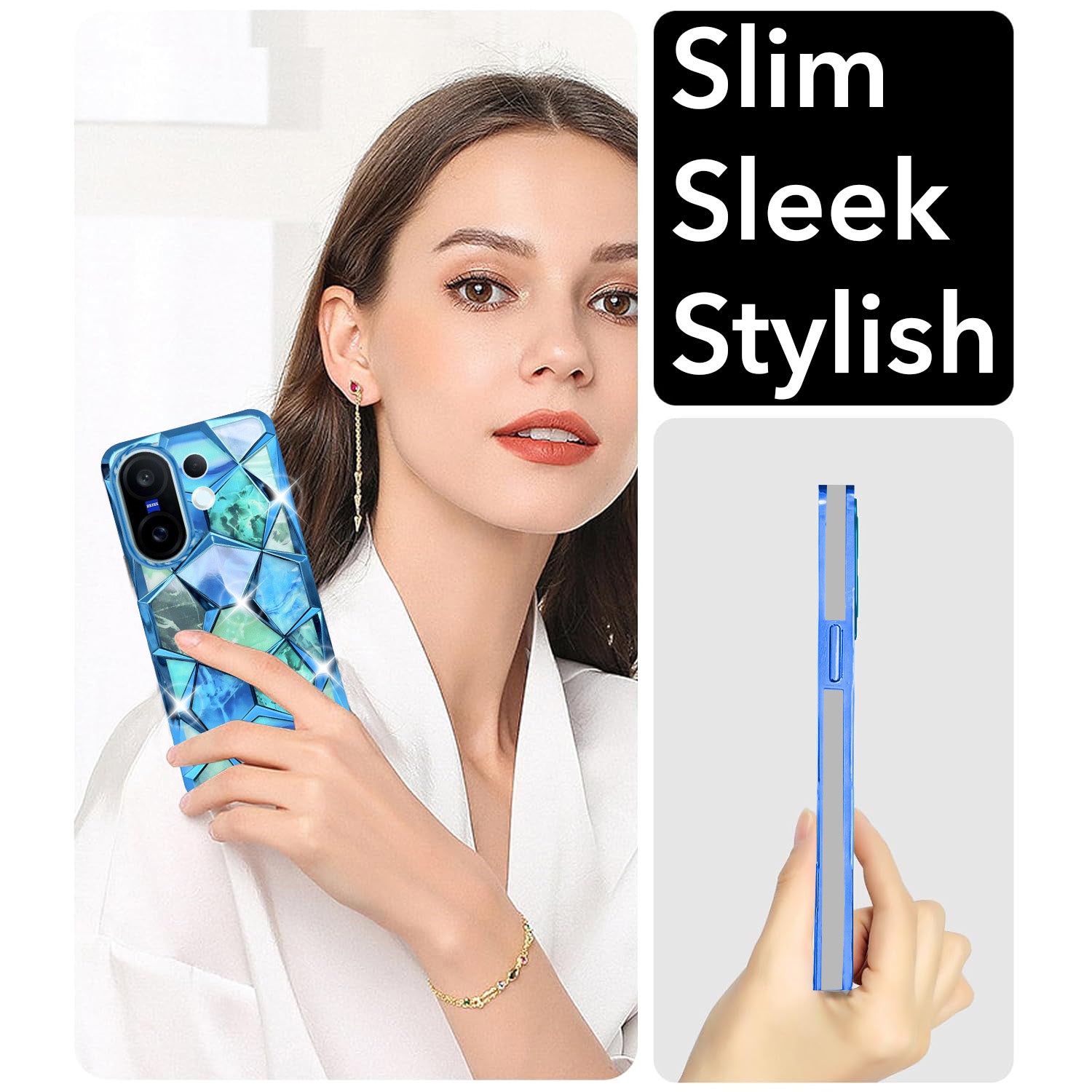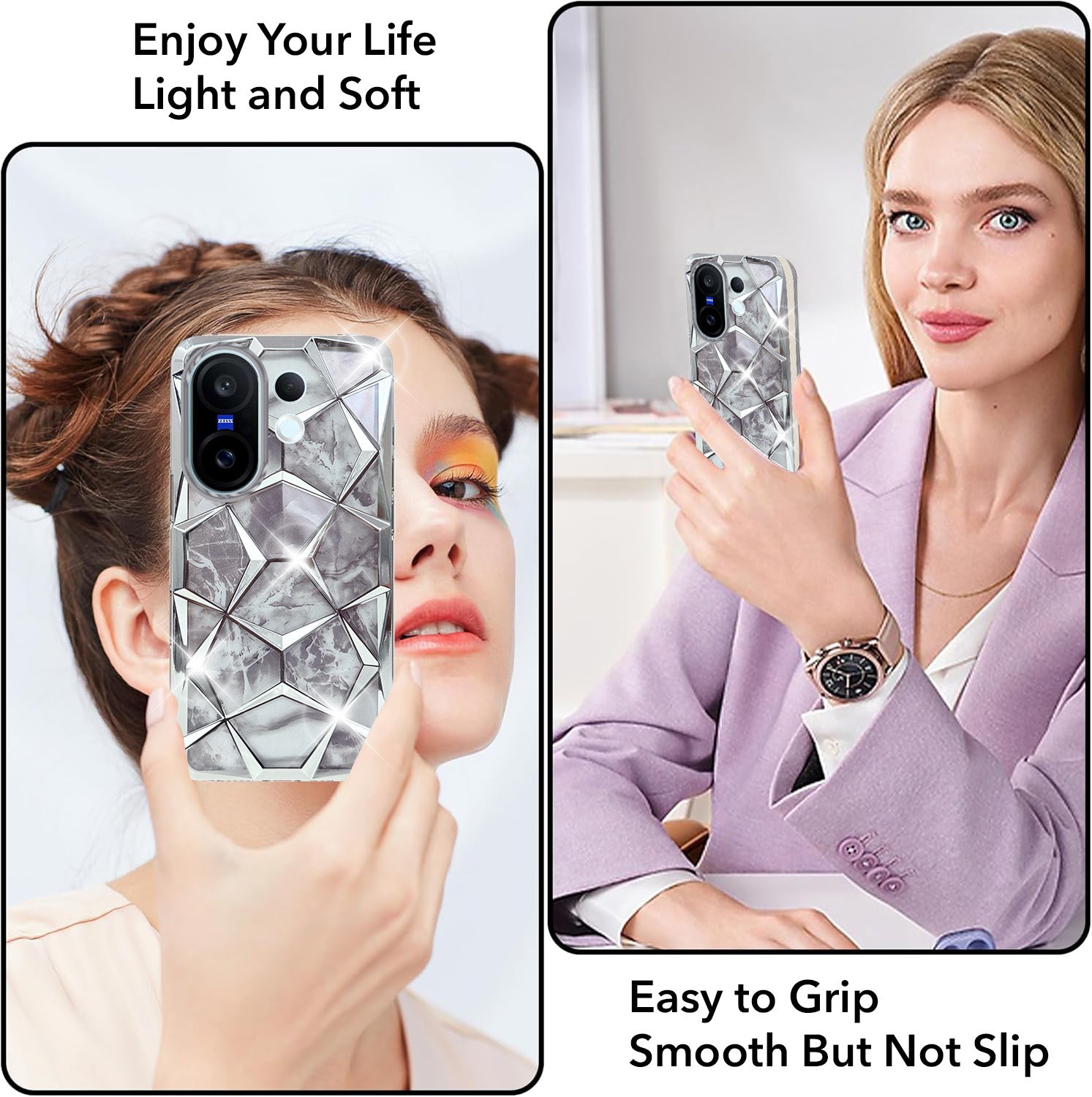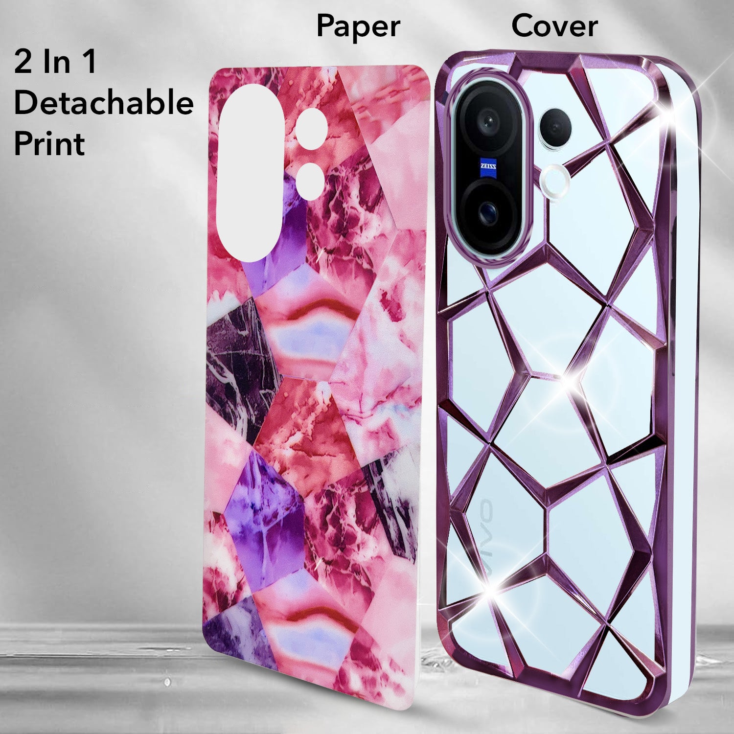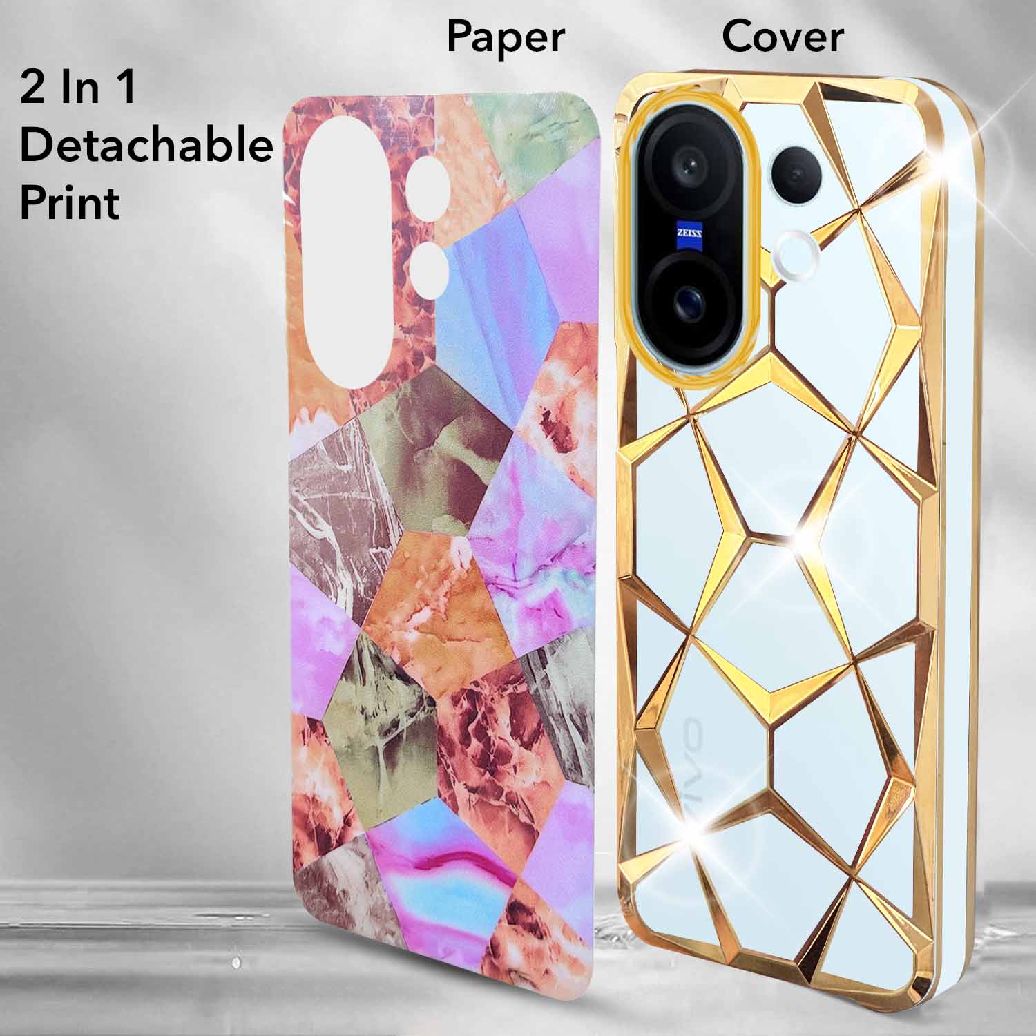 For Vivo X200 FE Back Cover Case 3D Silicone Compatible (Dual Design Glitter Sparkle and Detachable Diamond Print Case | Soft and Flexible)