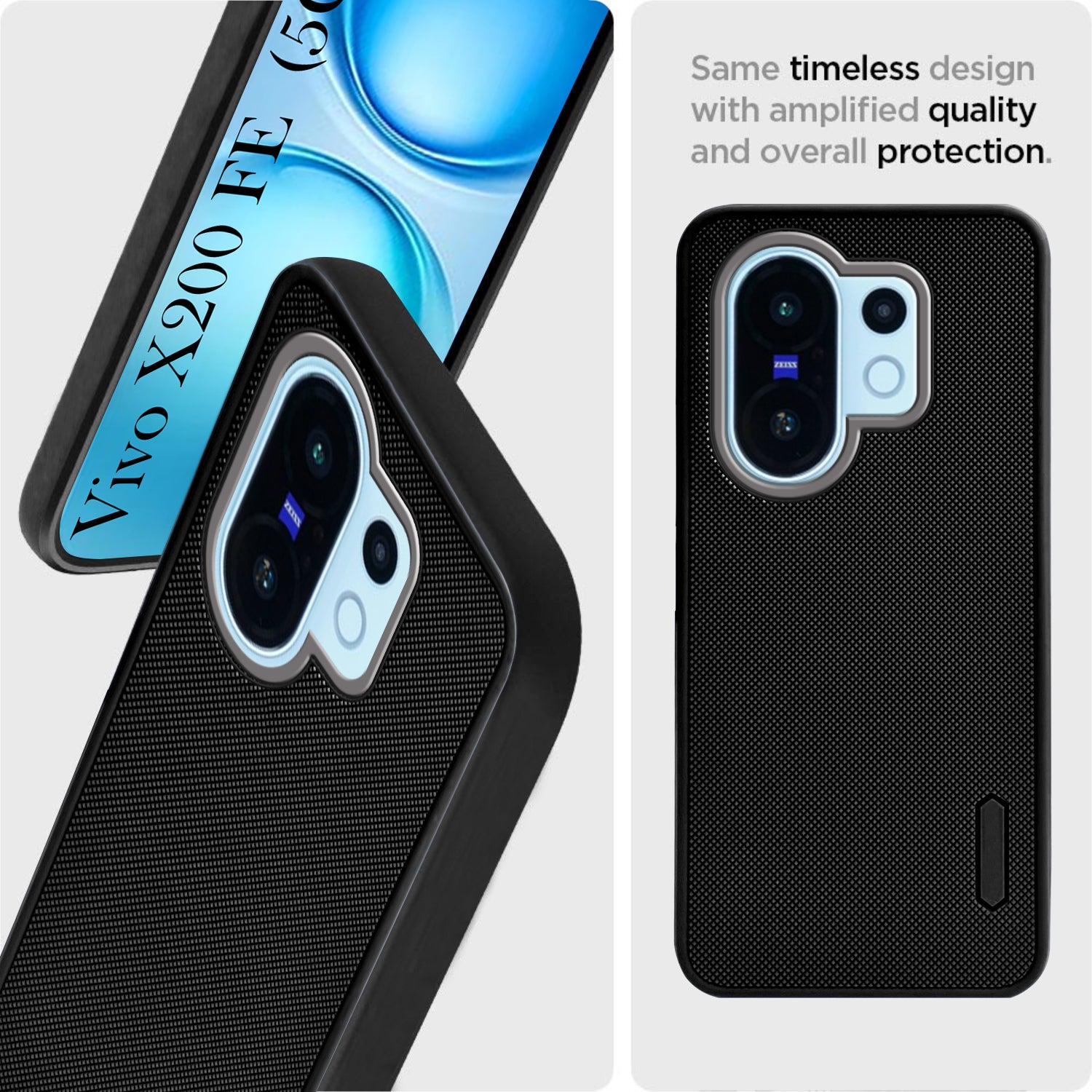For Vivo X200 FE Back Cover Case (Textured Grip Design | Micro-Fiber Cloth Inside | Slim and Light Weight | Soft Touch and Feel | Black)