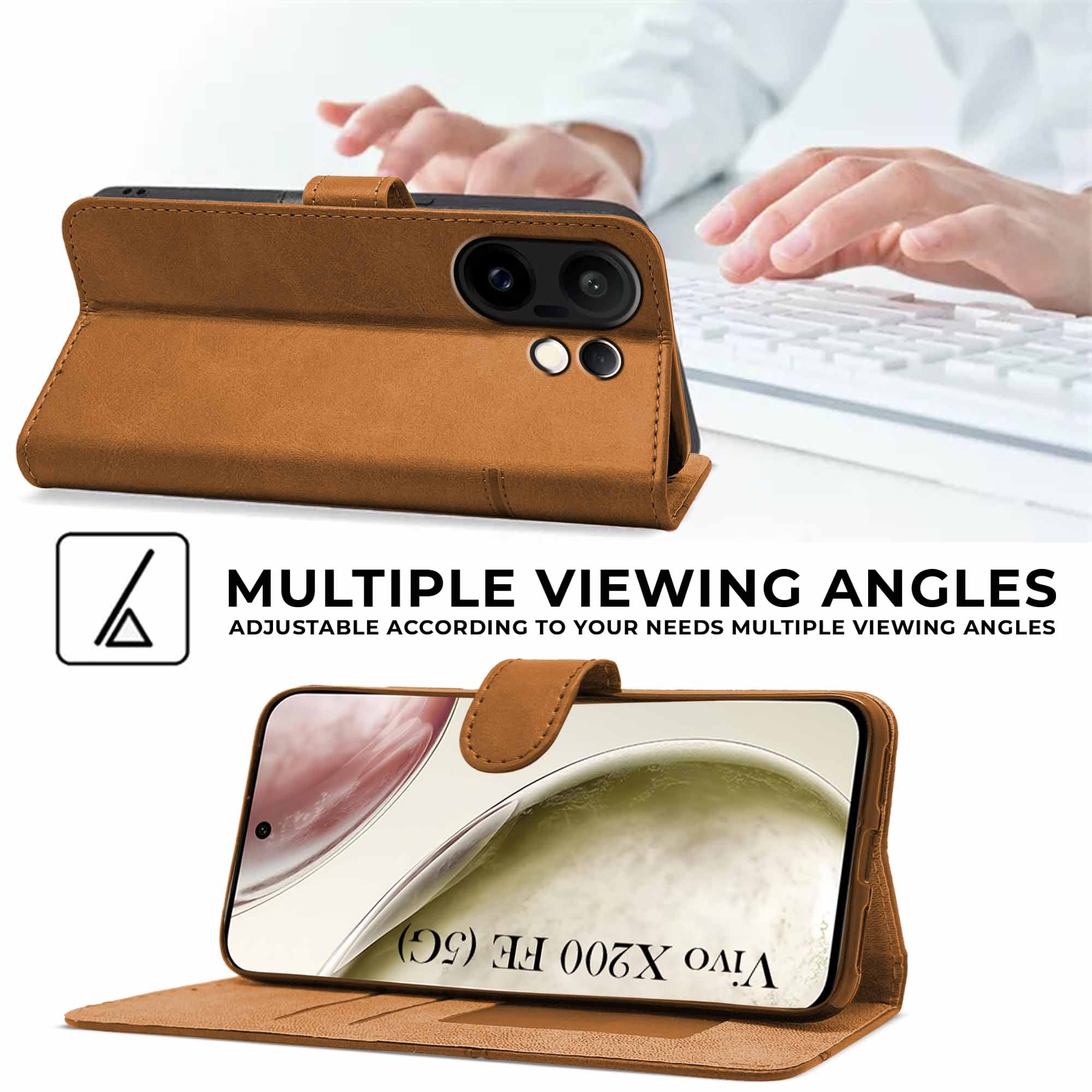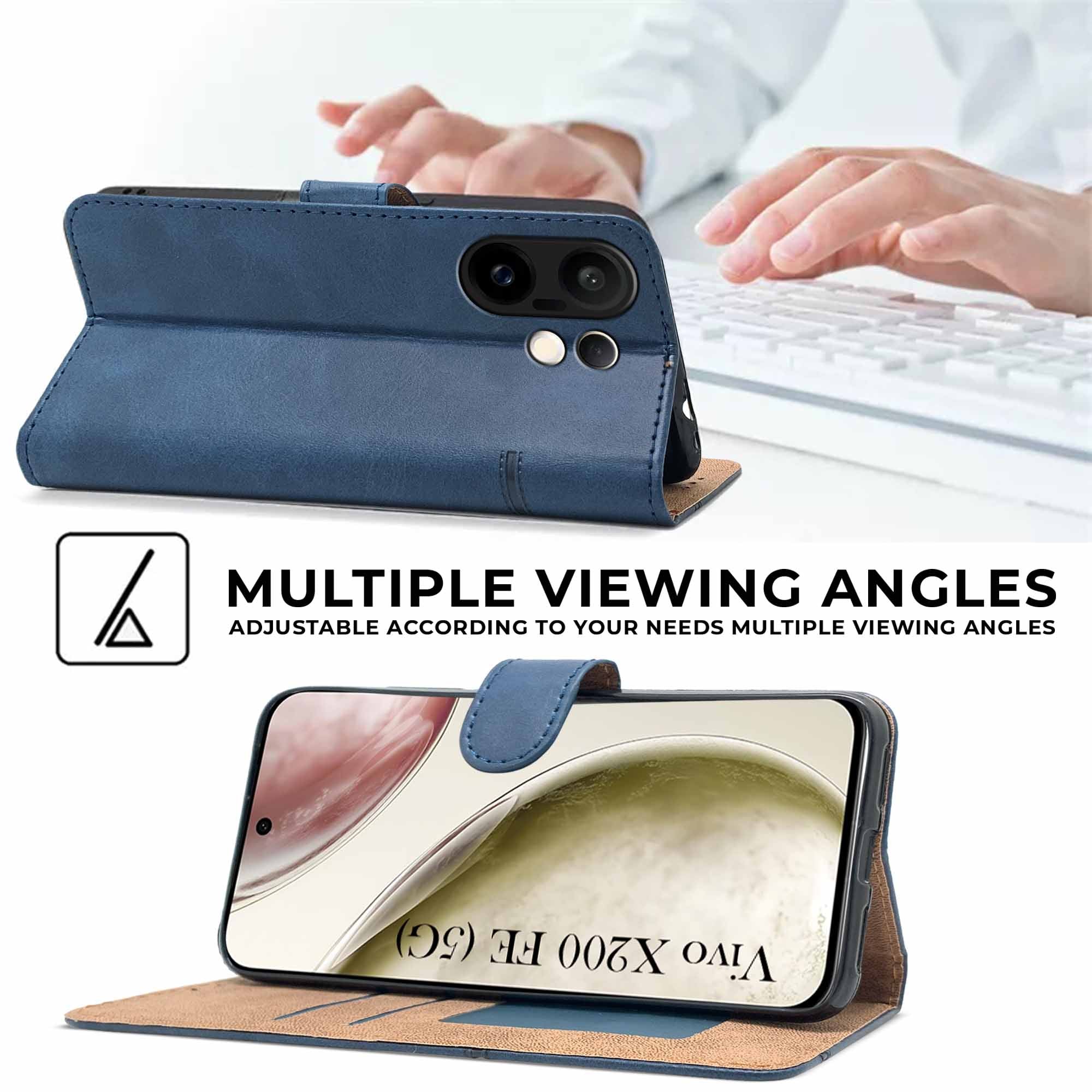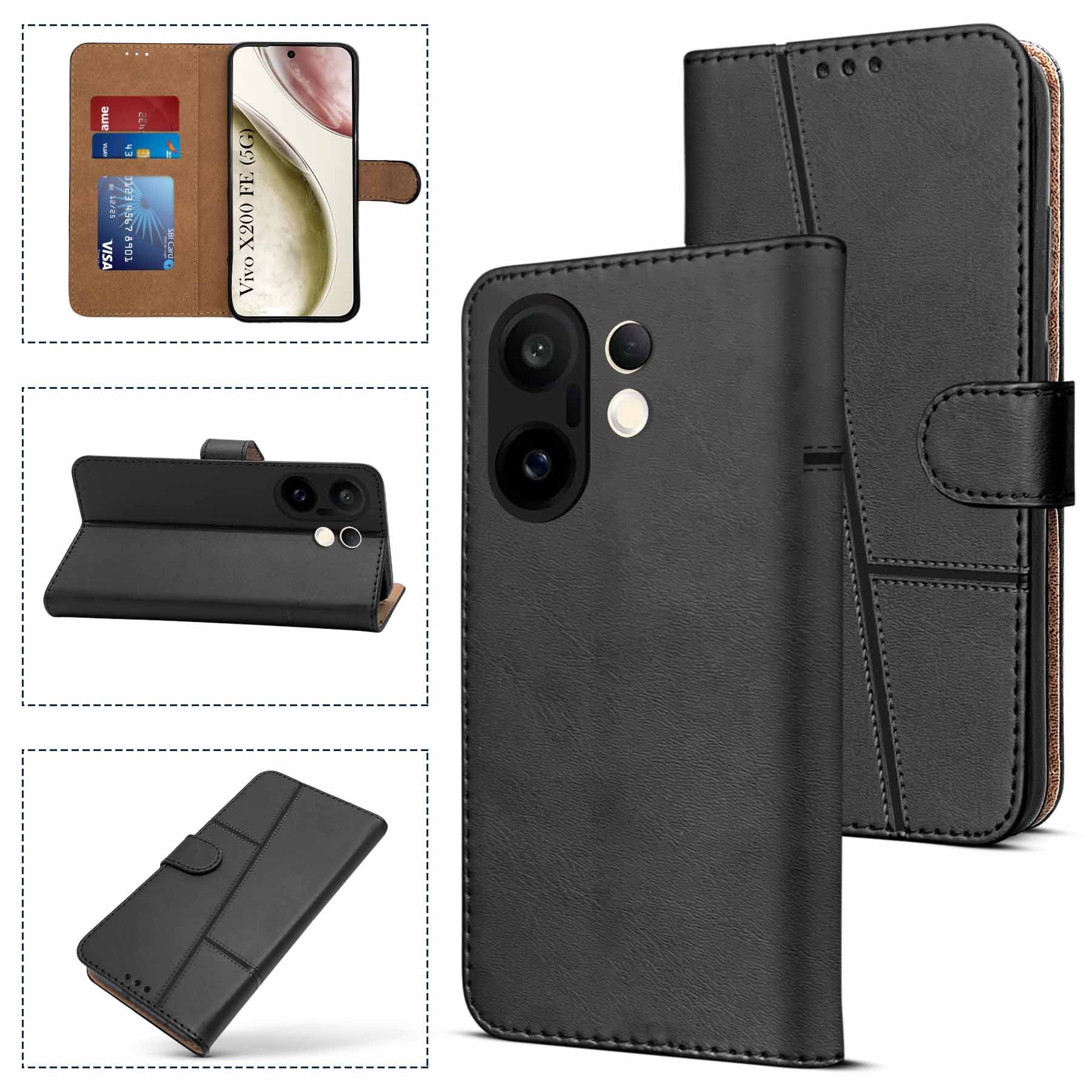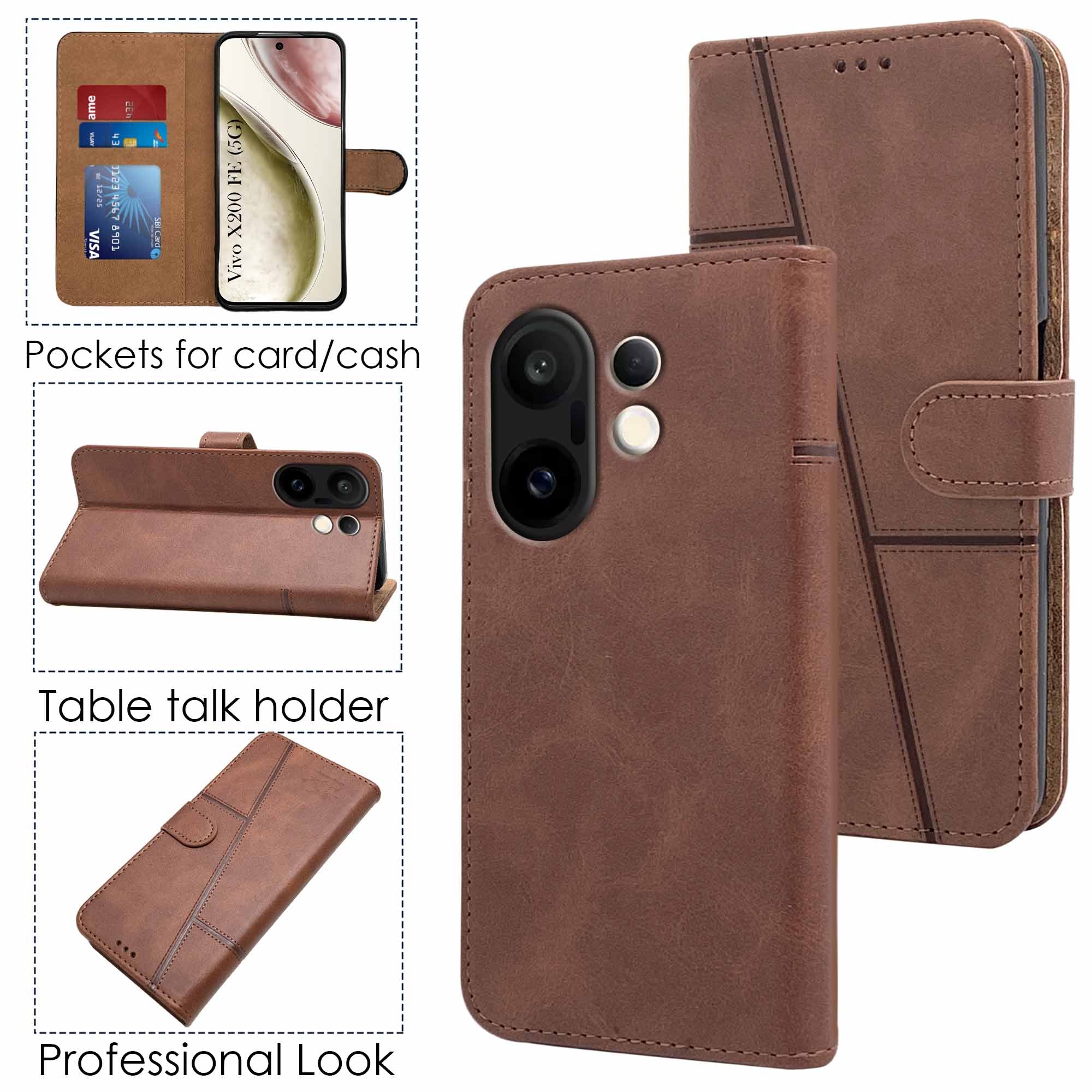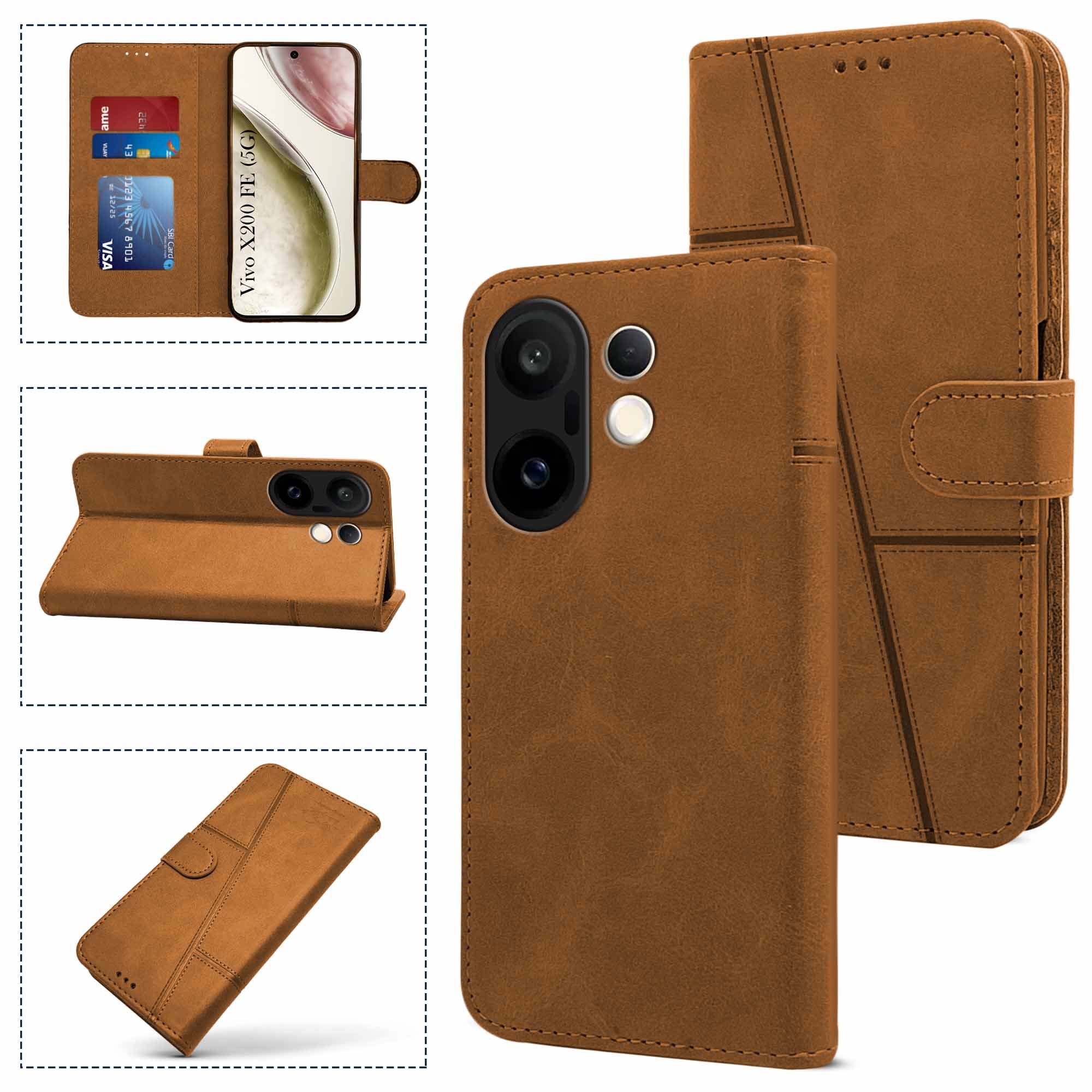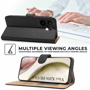 For Vivo X200 FE Flip Cover Case ( Stitched Leather with Magnetic Closure)