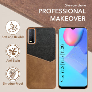 For Vivo Y12s | Y11s | Y12G Back Cover Case (Dual PU Leather Stitch | Professional Minimalist | Soft and Flexible)