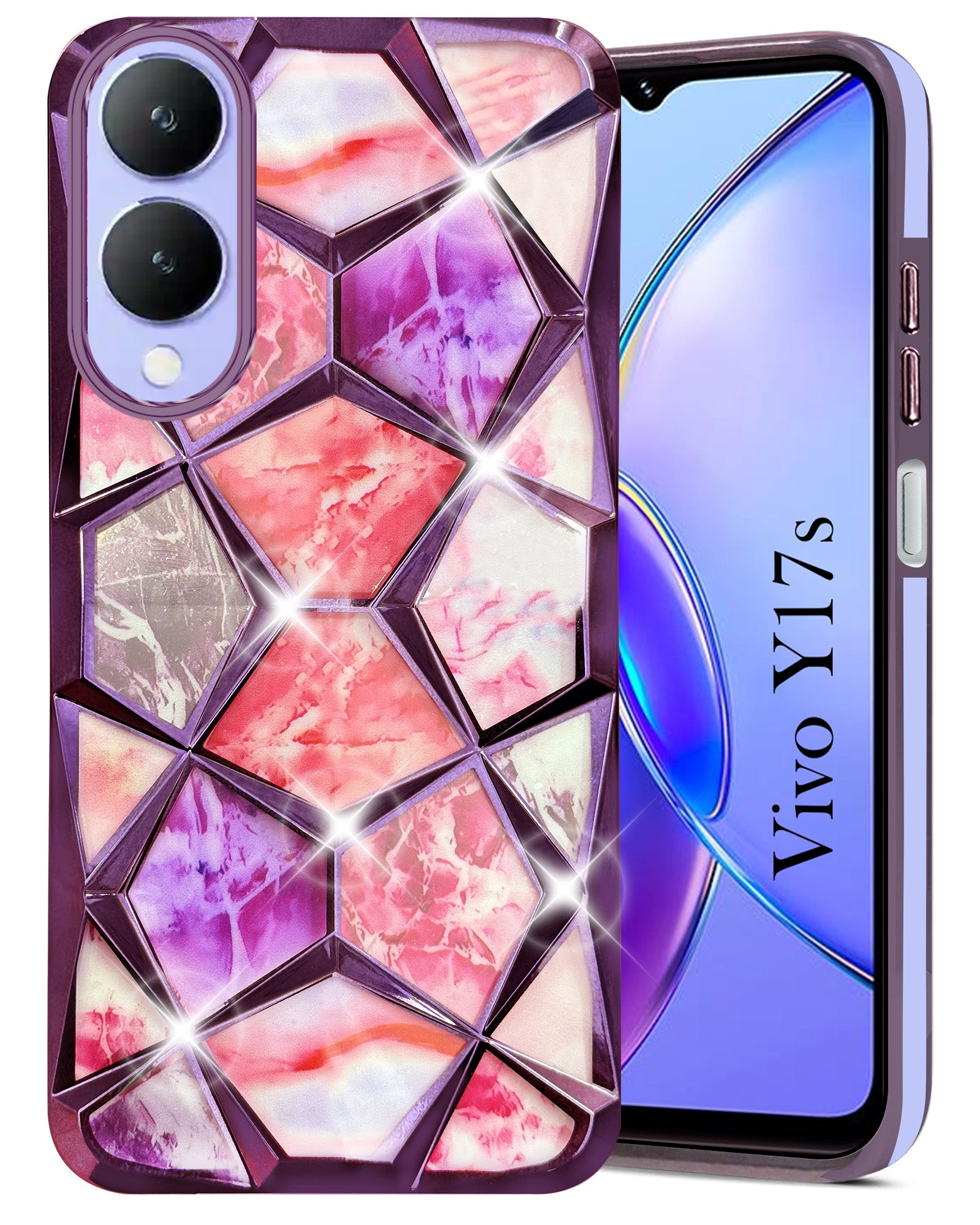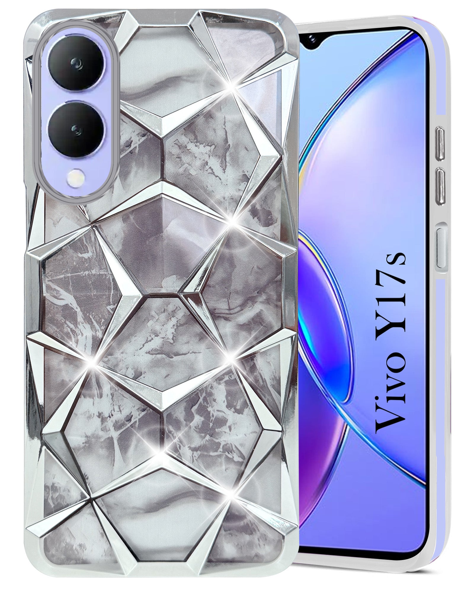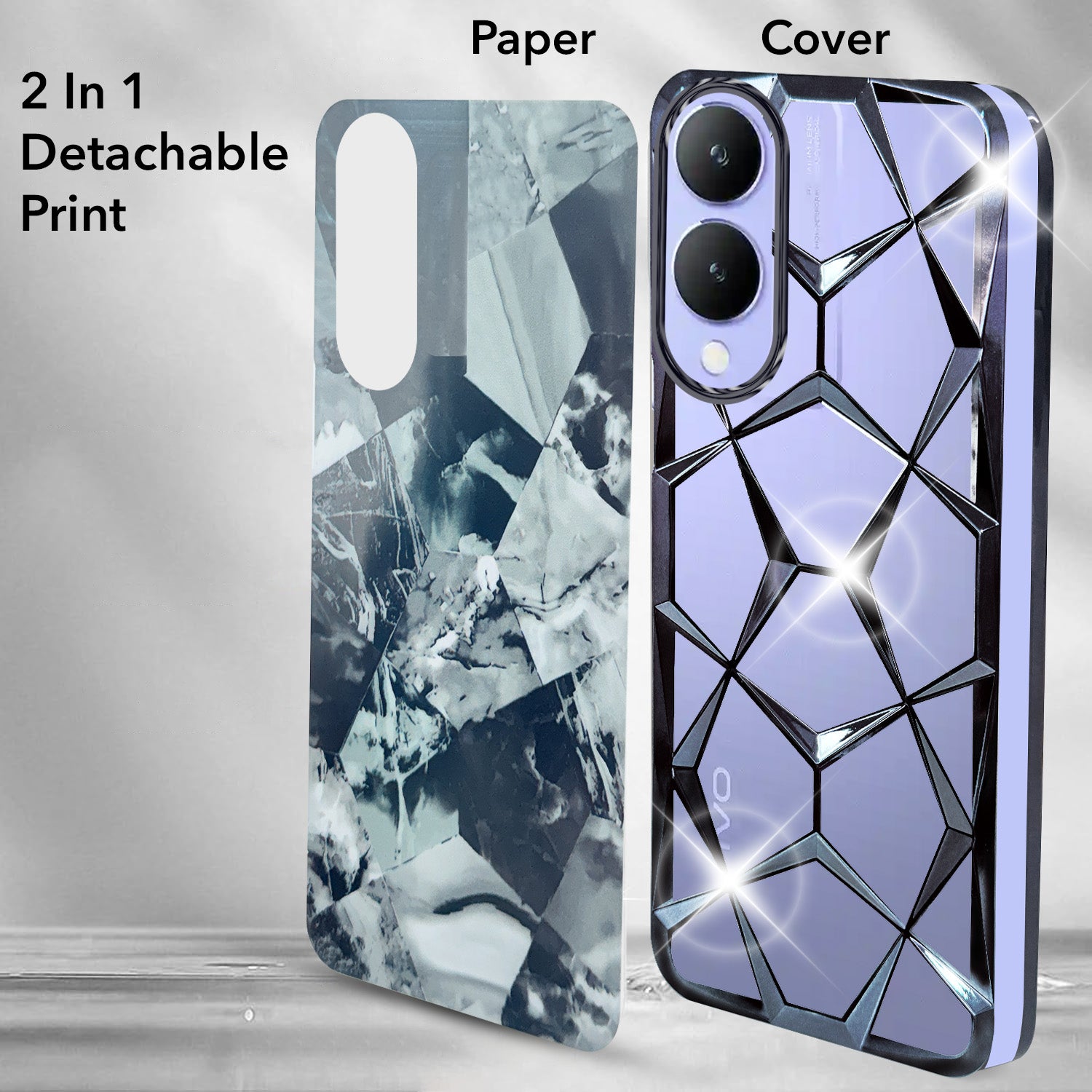 For Vivo Y17s Back Cover Case (Dual Design Glitter Sparkle and Detachable Diamond Print Case | Soft and Flexible)