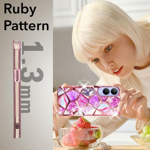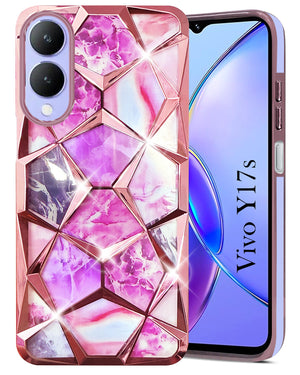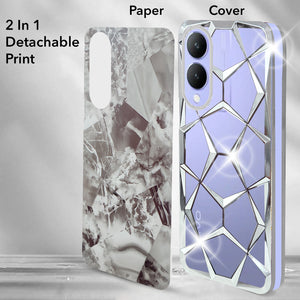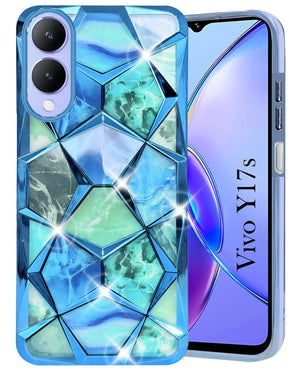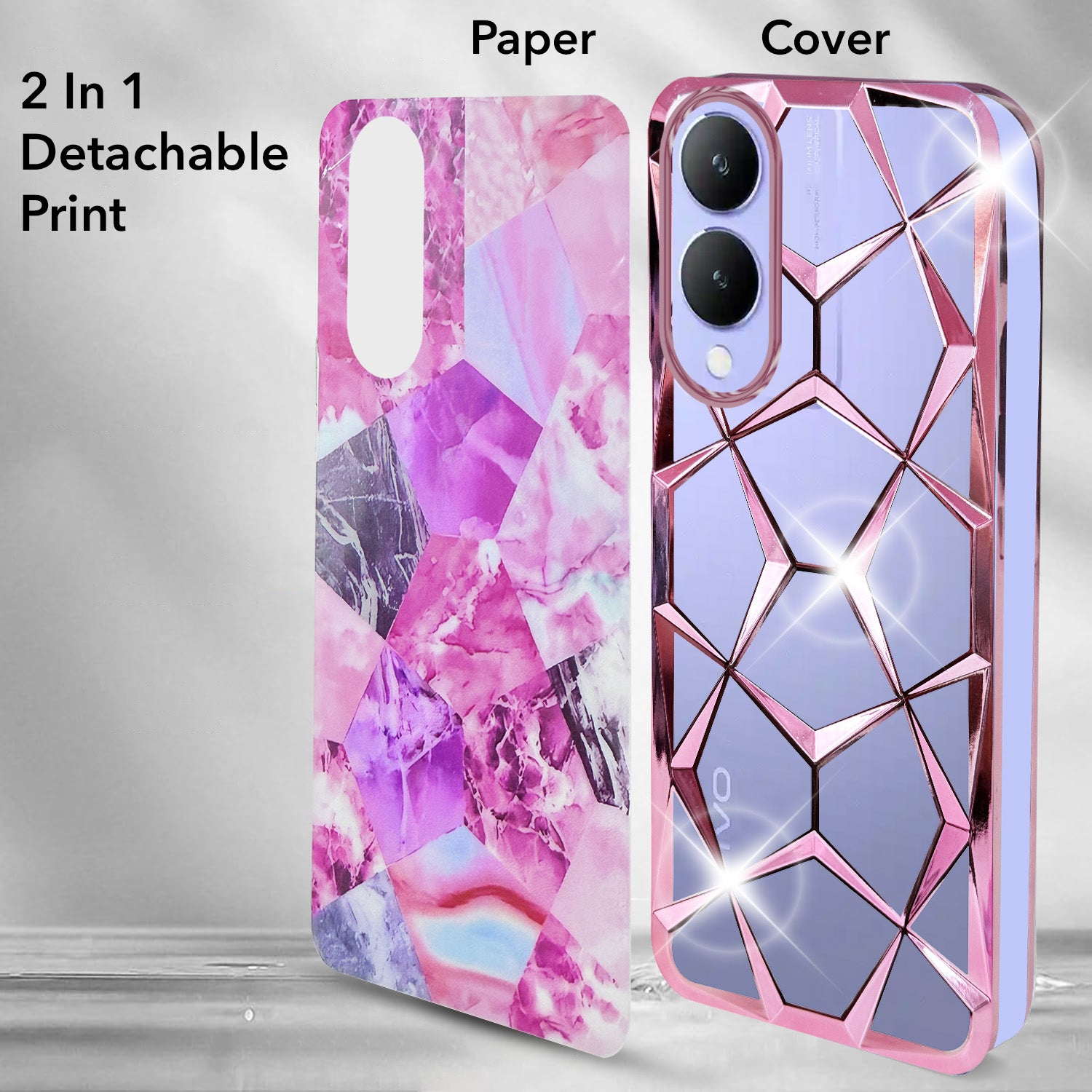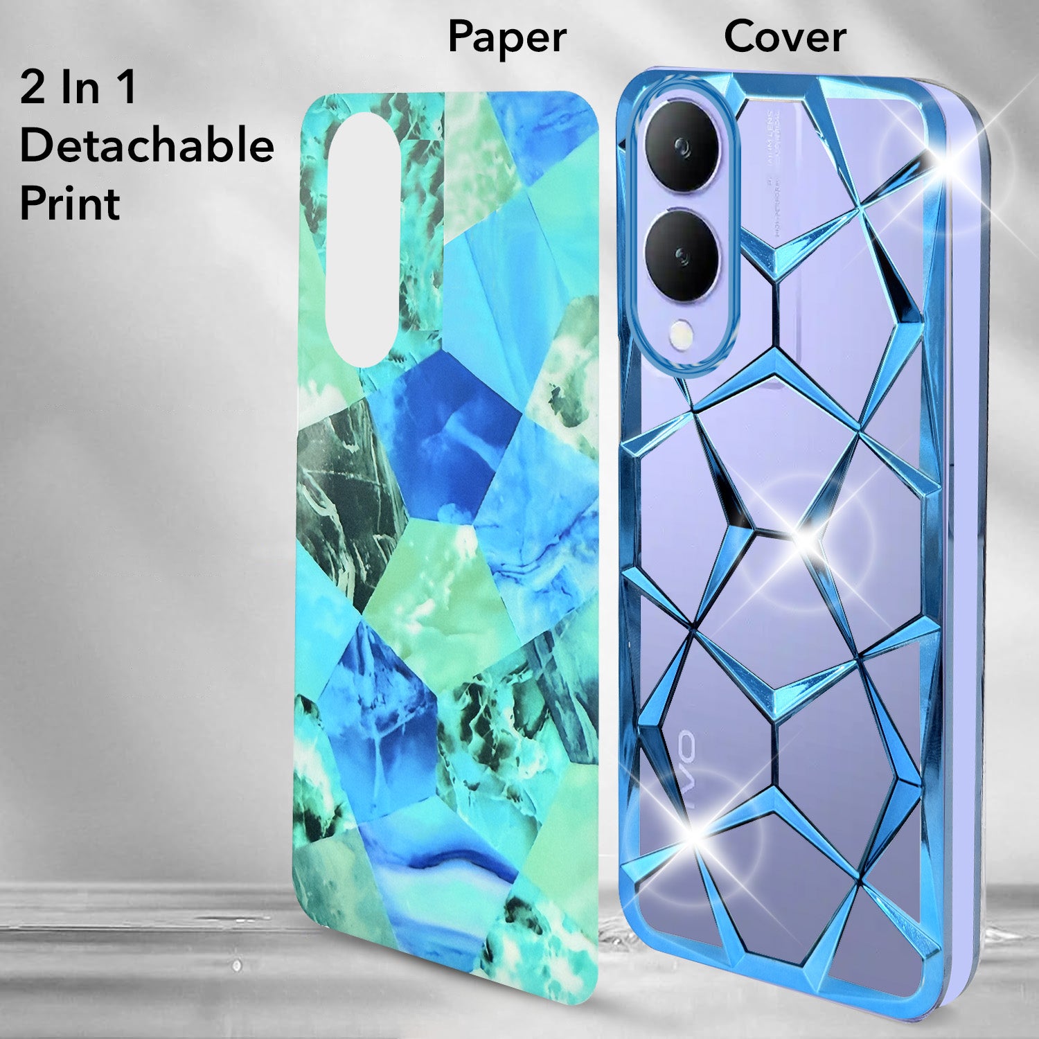 For Vivo Y17s Back Cover Case (Dual Design Glitter Sparkle and Detachable Diamond Print Case | Soft and Flexible)