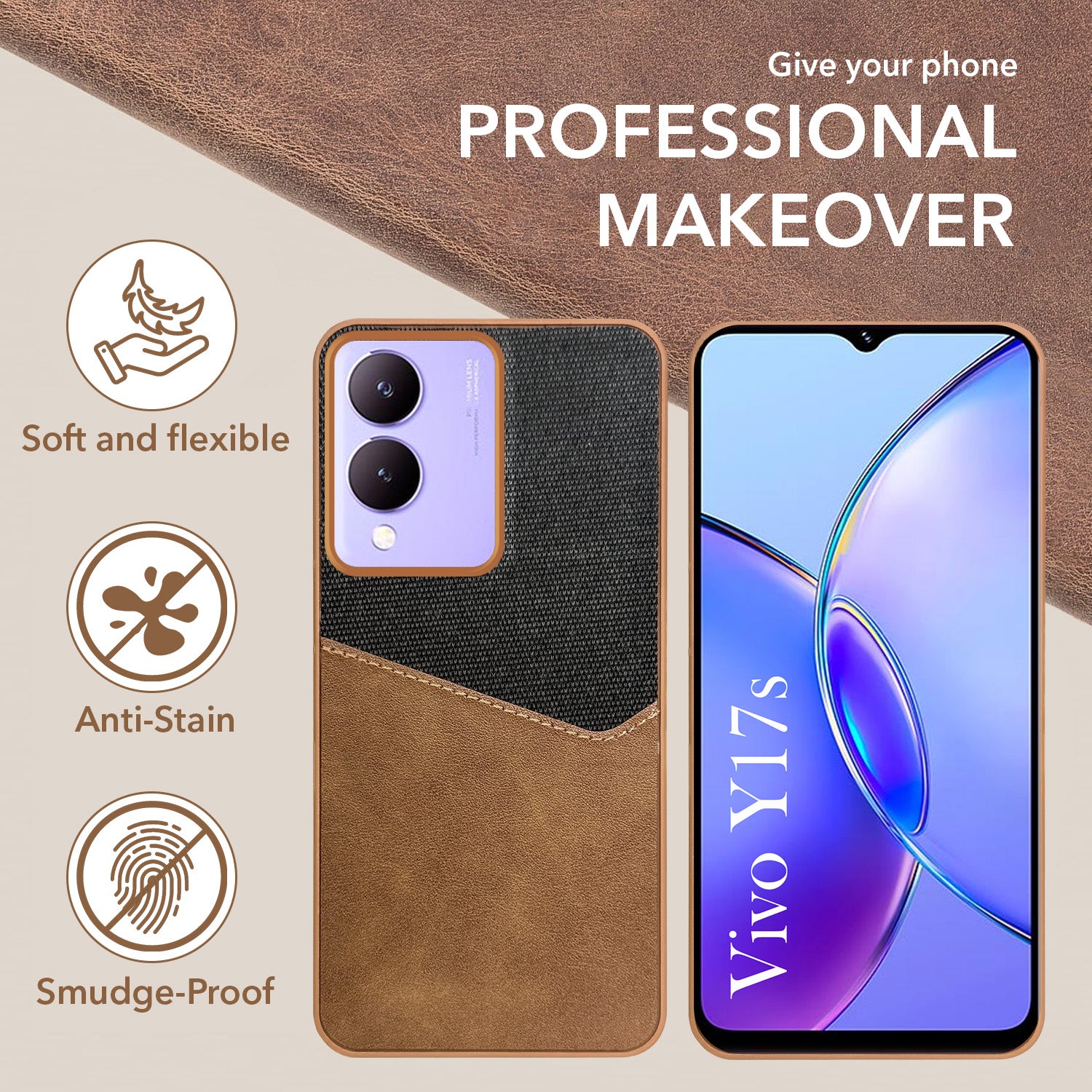 For Vivo Y17s Back Cover Case (Dual PU Leather Stitch | Professional Minimalist | Soft and Flexible)