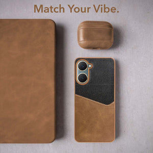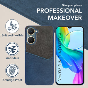 For Vivo Y18 | Y18e | Y03 | Y18i | Y18t Back Cover Case (Dual PU Leather Stitch | Professional Minimalist | Soft and Flexible)