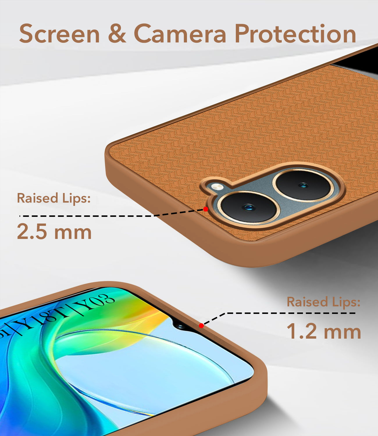 For Vivo Y18 | Y18e | Y03 | Y18i | Y18t Back Cover Case (Elegant PU Leather Finish | Premium Minimalist Professional | Camera Protection Bump)