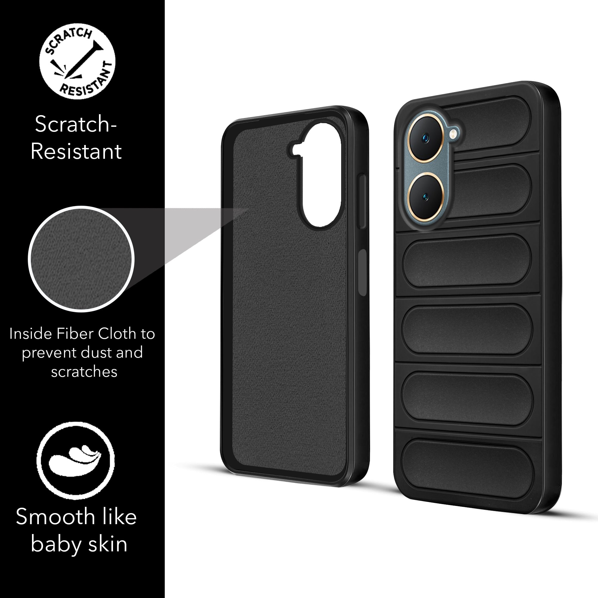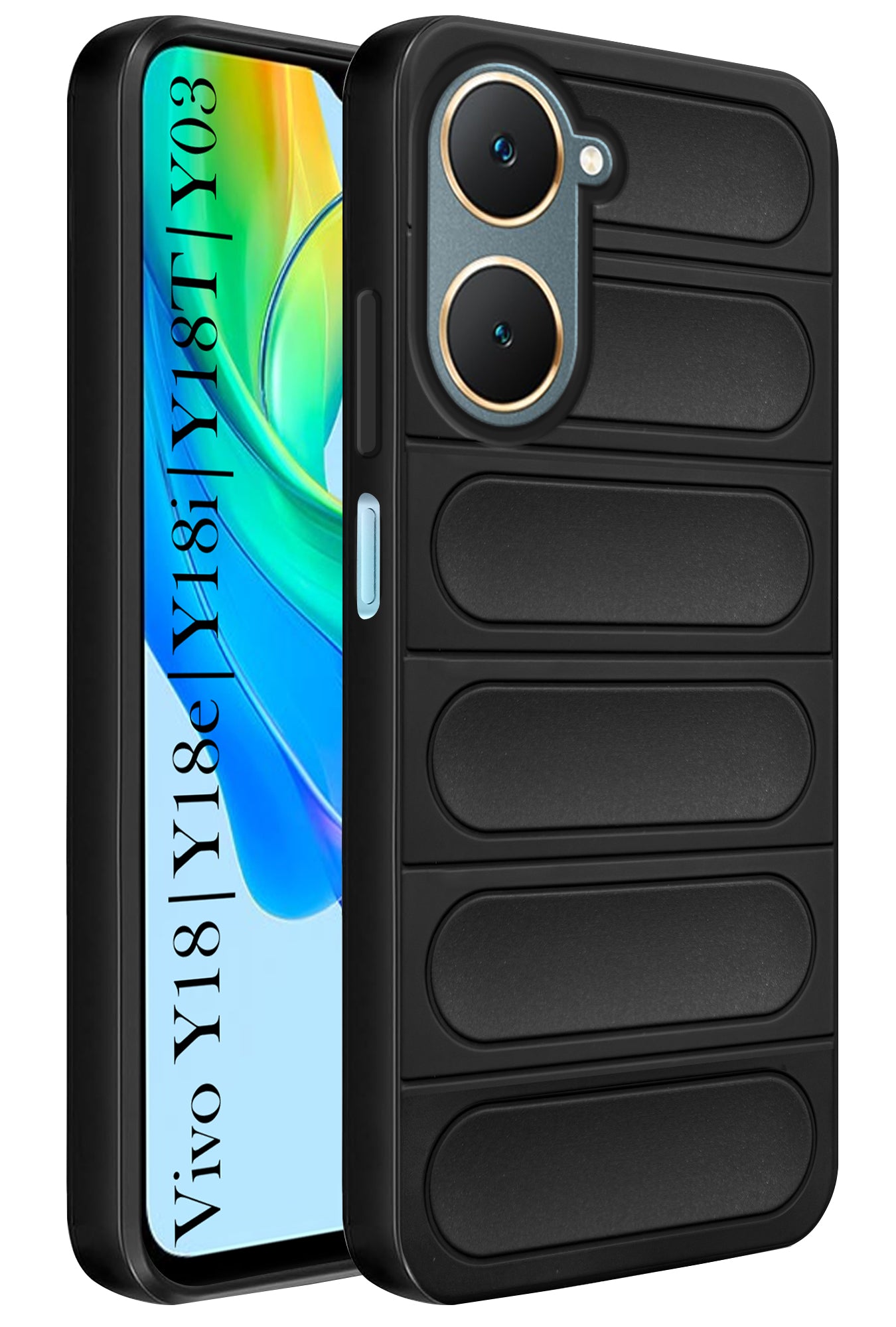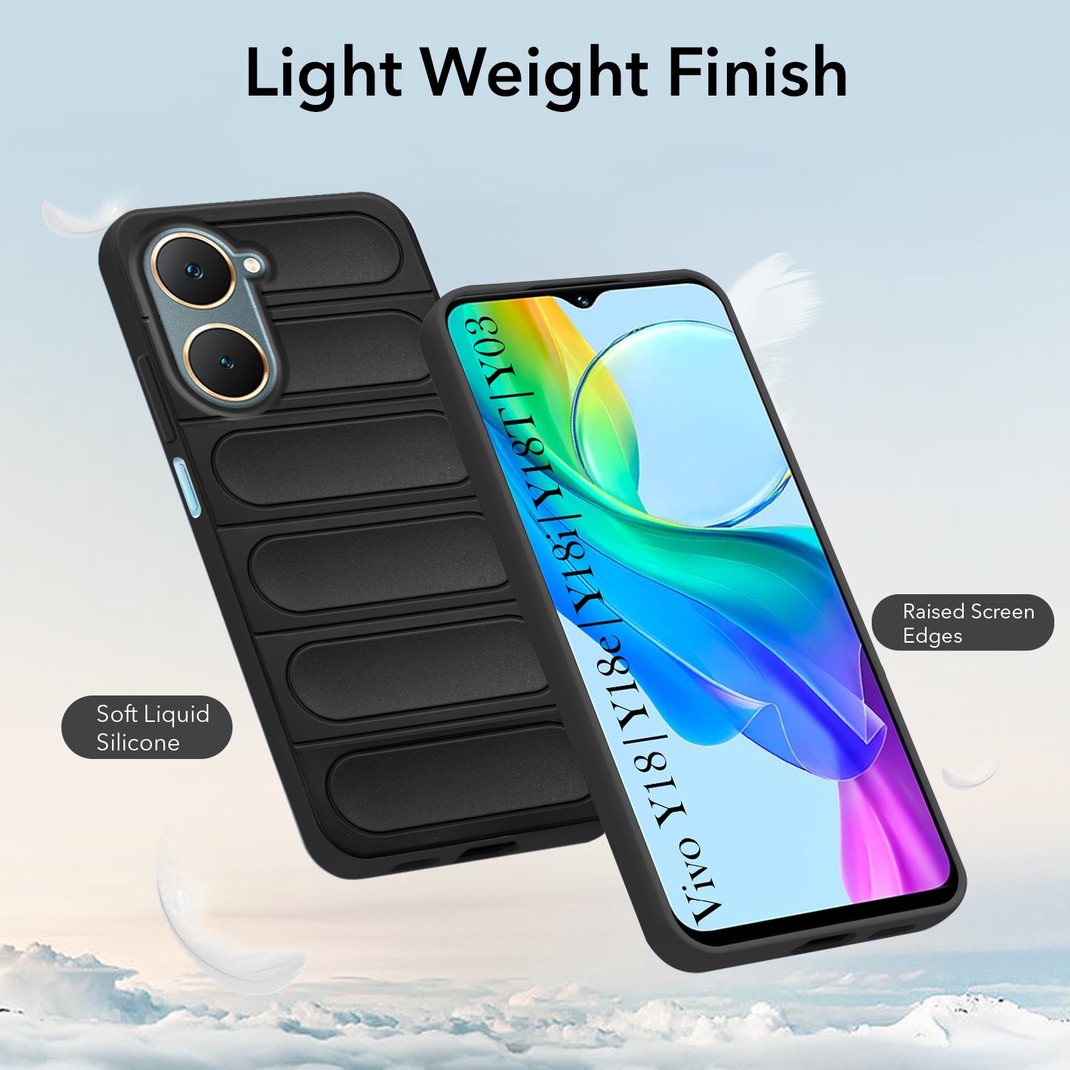 For Vivo Y18 | Y18e | Y03 | Y18i | Y18t Back Cover Case (Matte Liquid Silicone | Professional Micro-Fiber Cloth Inside | Camera Protection Ring | Wave Black)