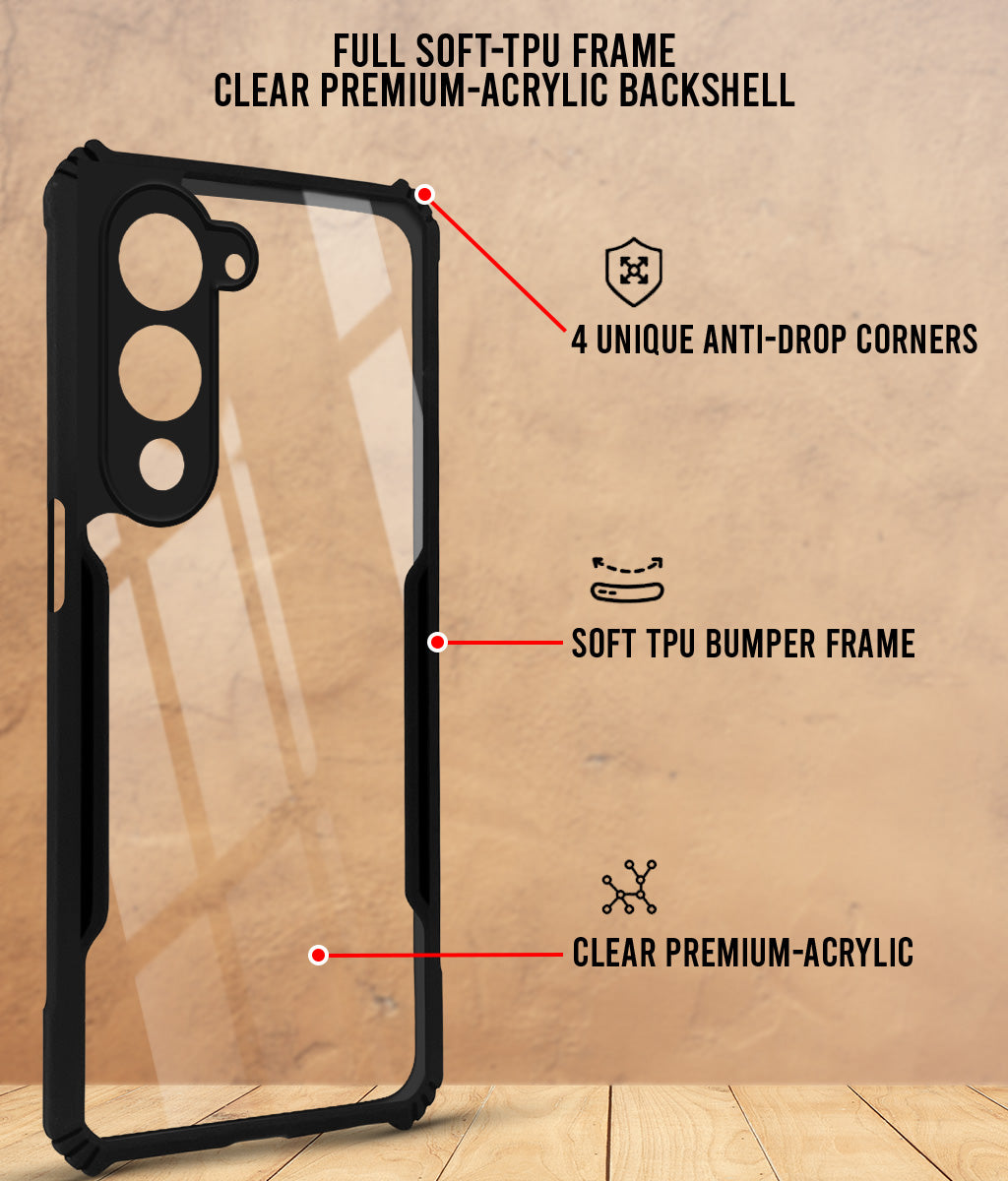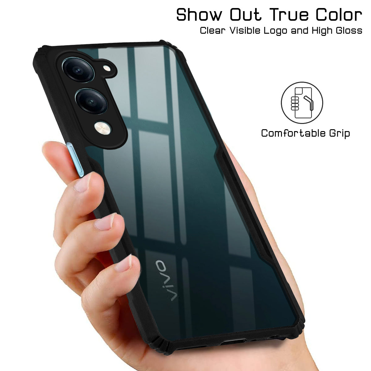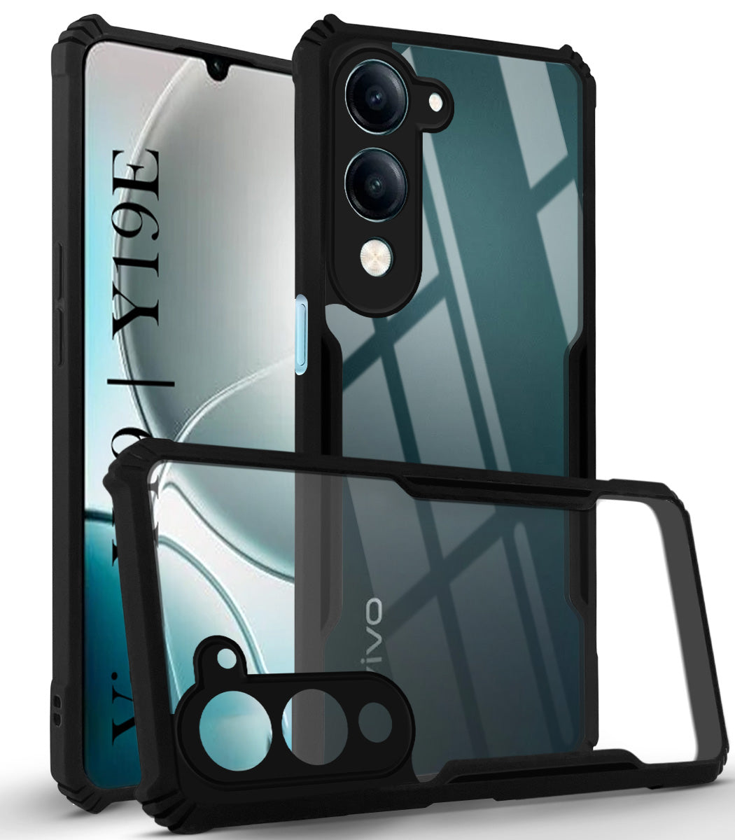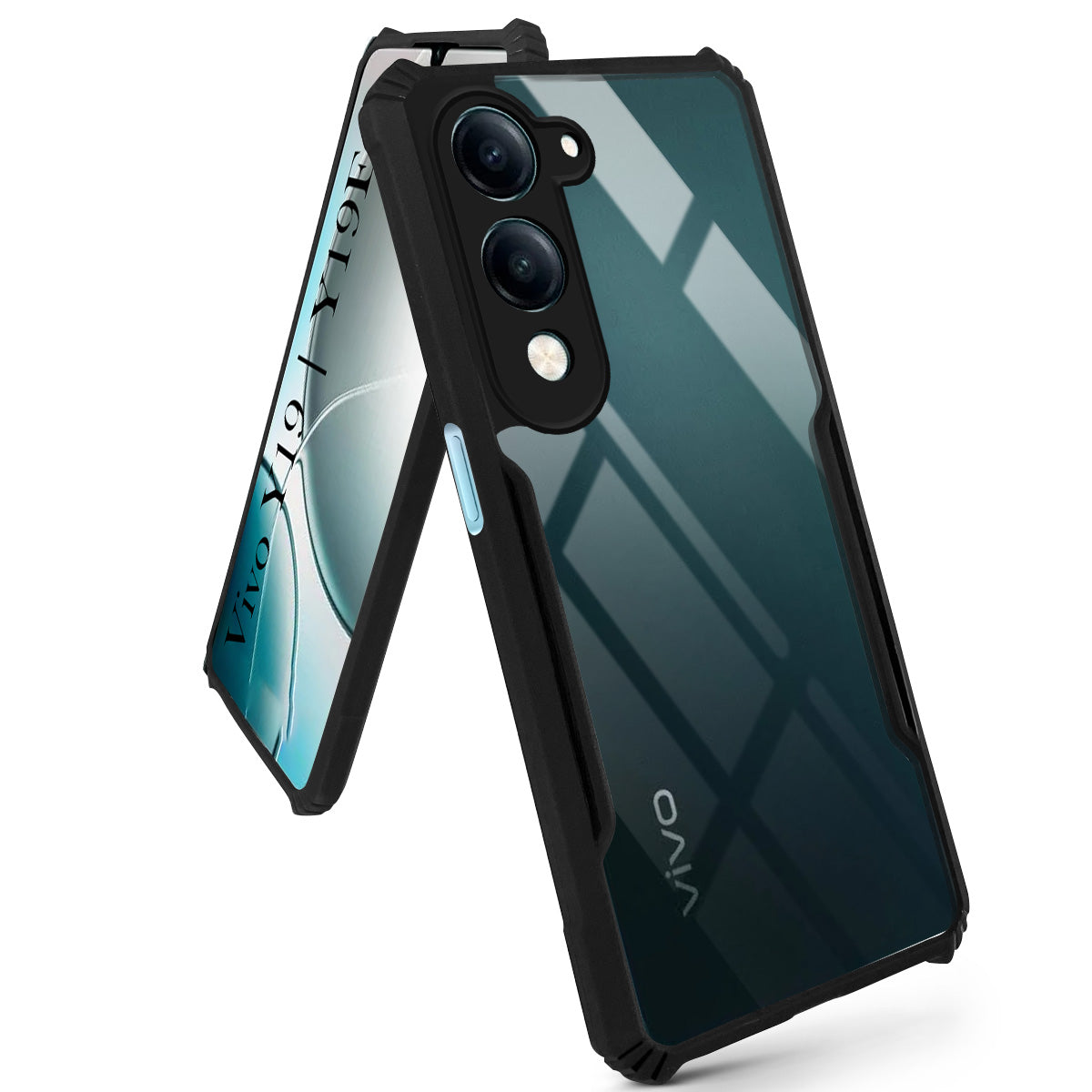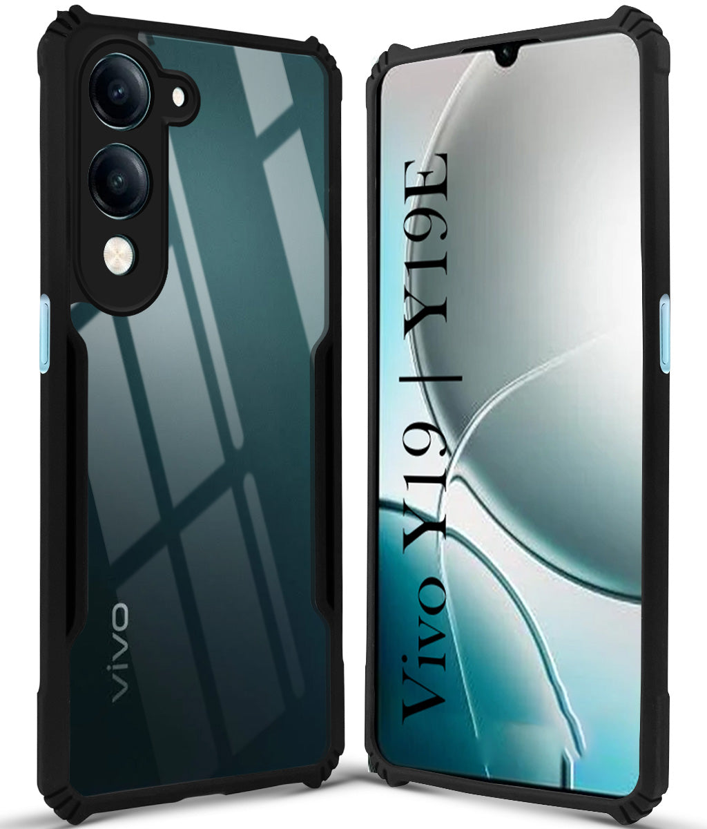 For Vivo Y19 | Vivo Y19e | Vivo T4 Lite Back Cover Case ( Shockproof with Polycarbonate Clear Panel | Professional Black)