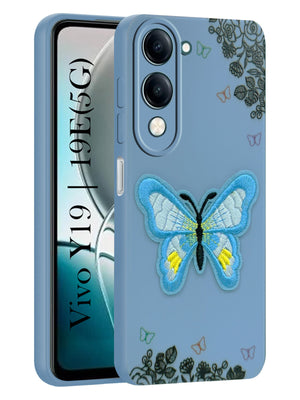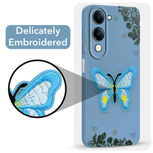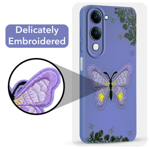 For Vivo Y19 | Vivo Y19e | Vivo T4 Lite Back Cover Case (Soft Butterfly Embroidery | Women Teen Girls | Camera Protection| Matte Silicone)