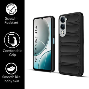 For Vivo Y19 | Vivo Y19e | Vivo T4 Lite Back Case Cover (Matte Liquid Silicone| Professional Wave Design | Camera Protection Ring | Shockproof Anti Slip Grip)