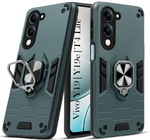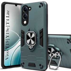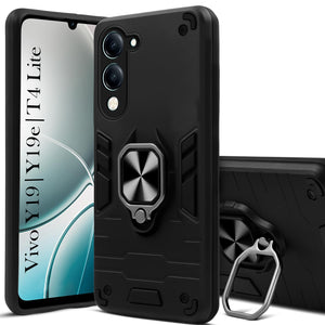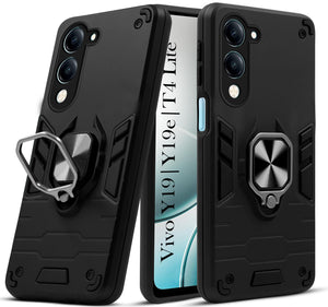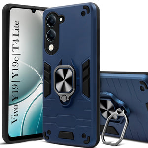 For Vivo Y19 | Vivo Y19e | Vivo T4 Lite Back Cover Case (Shockproof Dual Layer Polycarbonate |Ring Holder Kickstand)