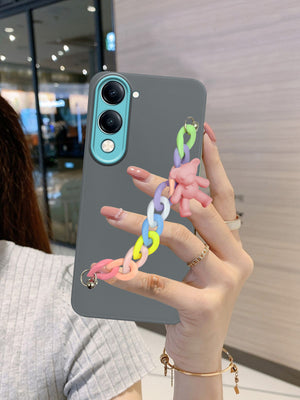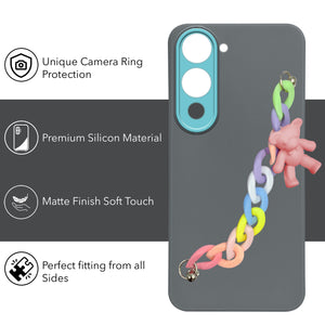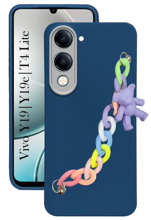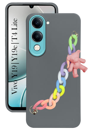 For Vivo Y19 | Vivo Y19e | Vivo T4 Lite Back Cover Case ( Wrist Hanging Chain | Teddy Bracelet Charms | Dual Color Matte Finish | Full Camera Protection |