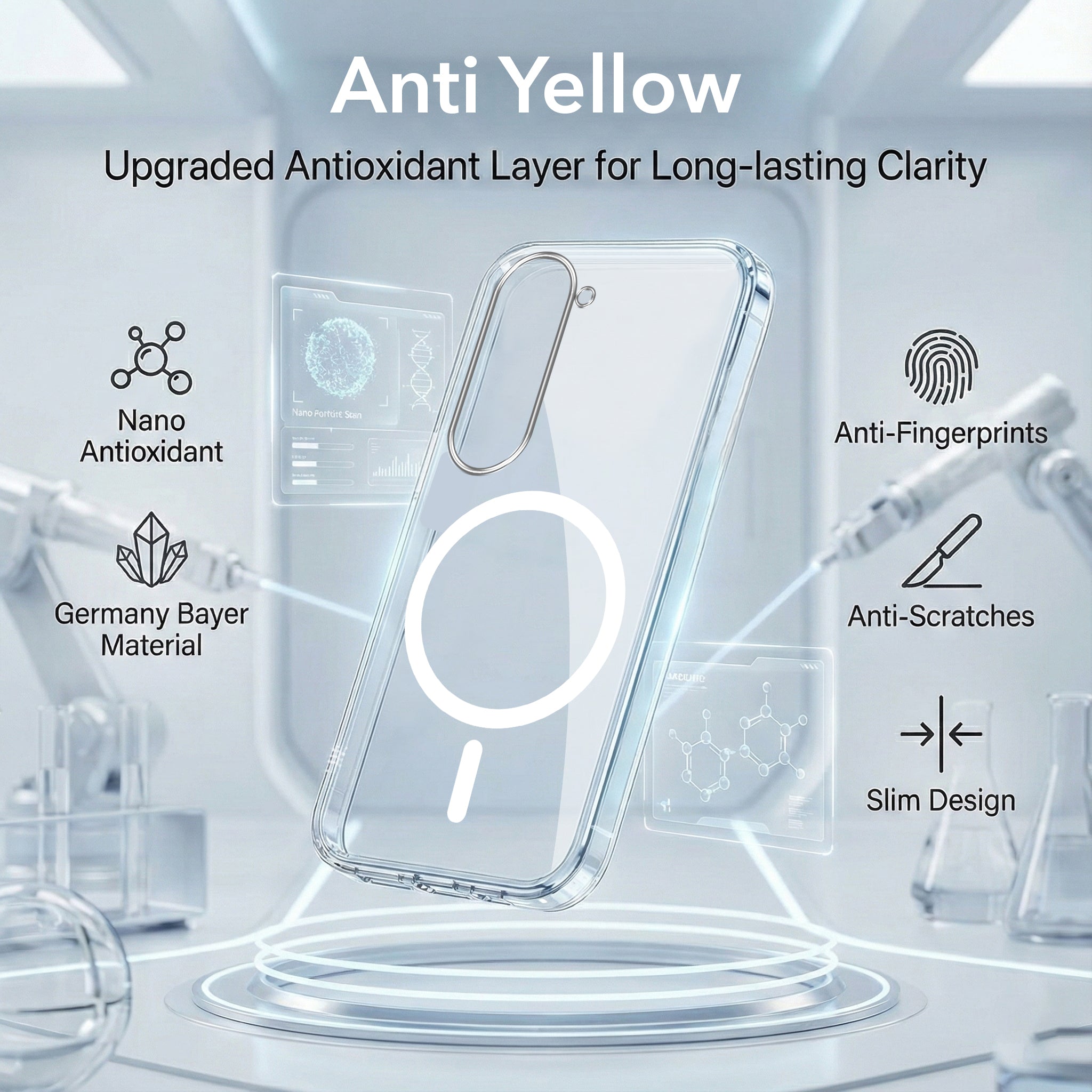 For Vivo Y19 | Vivo Y19e | Vivo T4 Lite Lifetime Anti-Yellow MagSafe Compatible Clear Back Cover Case (Sleek Hard Crystal | Shockproof and Camera Protection)