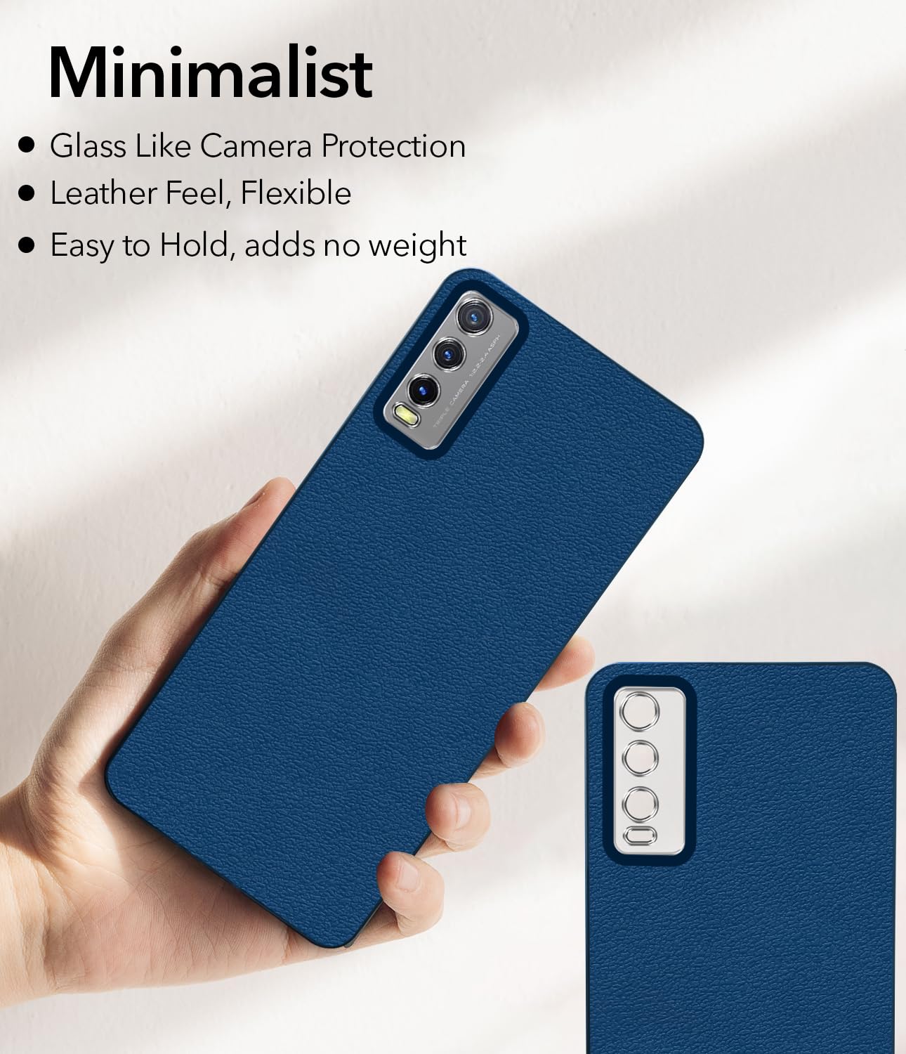 For Vivo Y20 2021 Back Cover Case (Glass Like Camera Protection | Leather Feel | Minimalist Professional Grip)