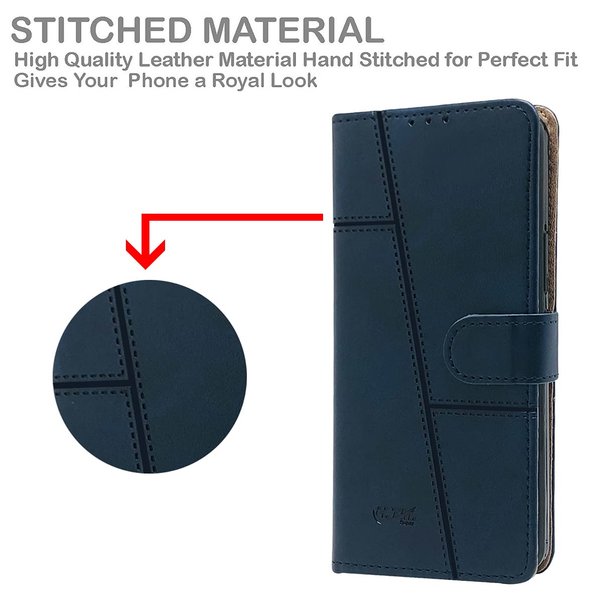 For Vivo Y20 2021 Flip Cover Case (Stitched Leather Finish | Magnetic Closure | Inner TPU | Foldable Stand | Wallet Card Slots | Black)