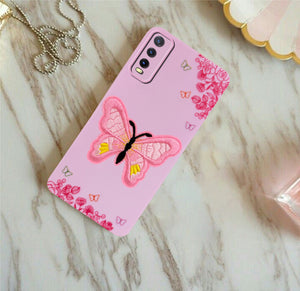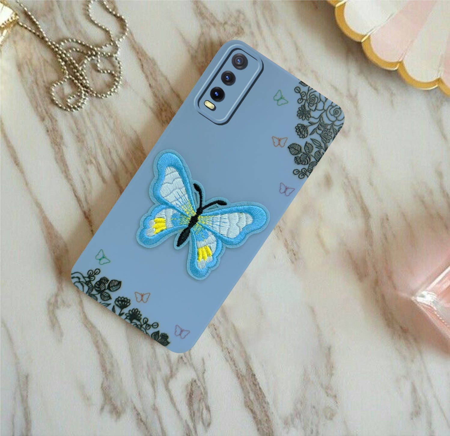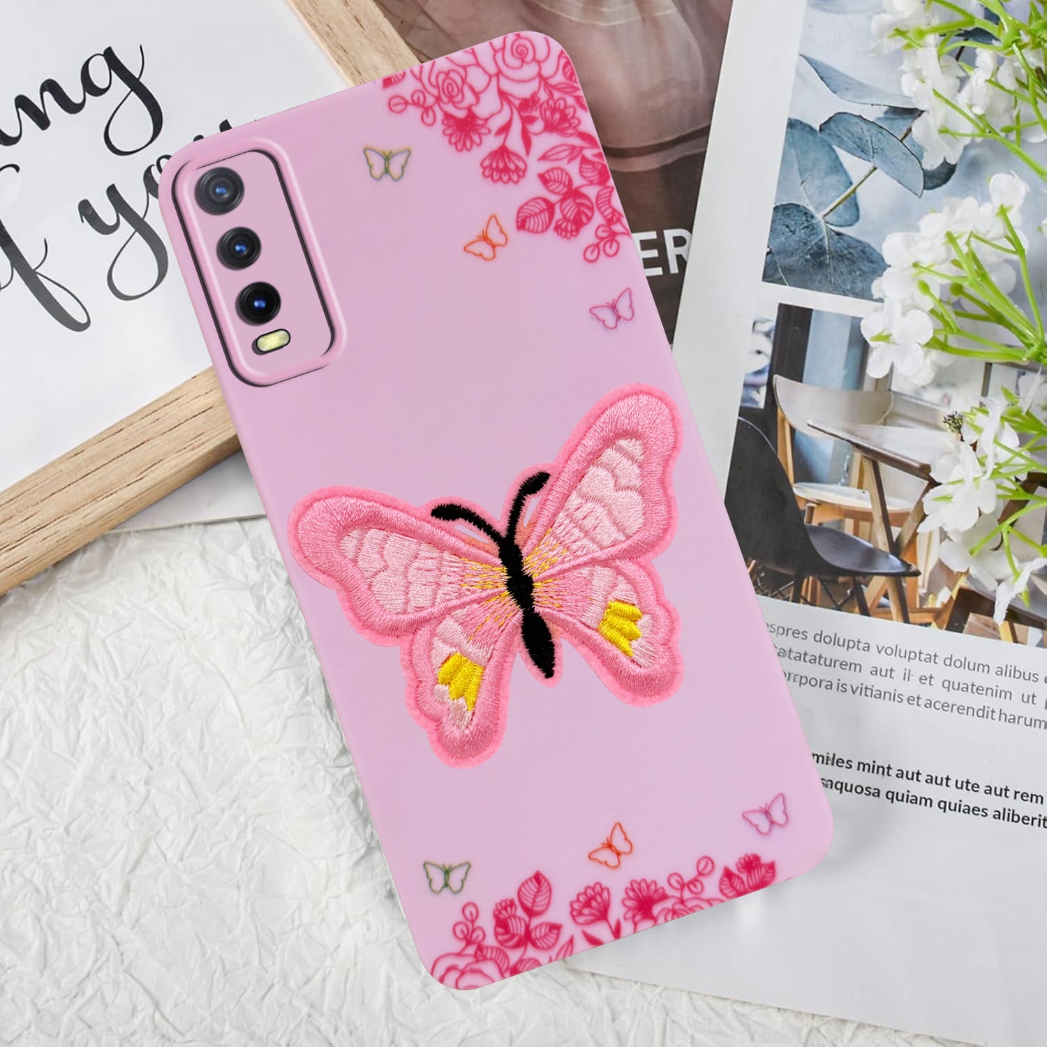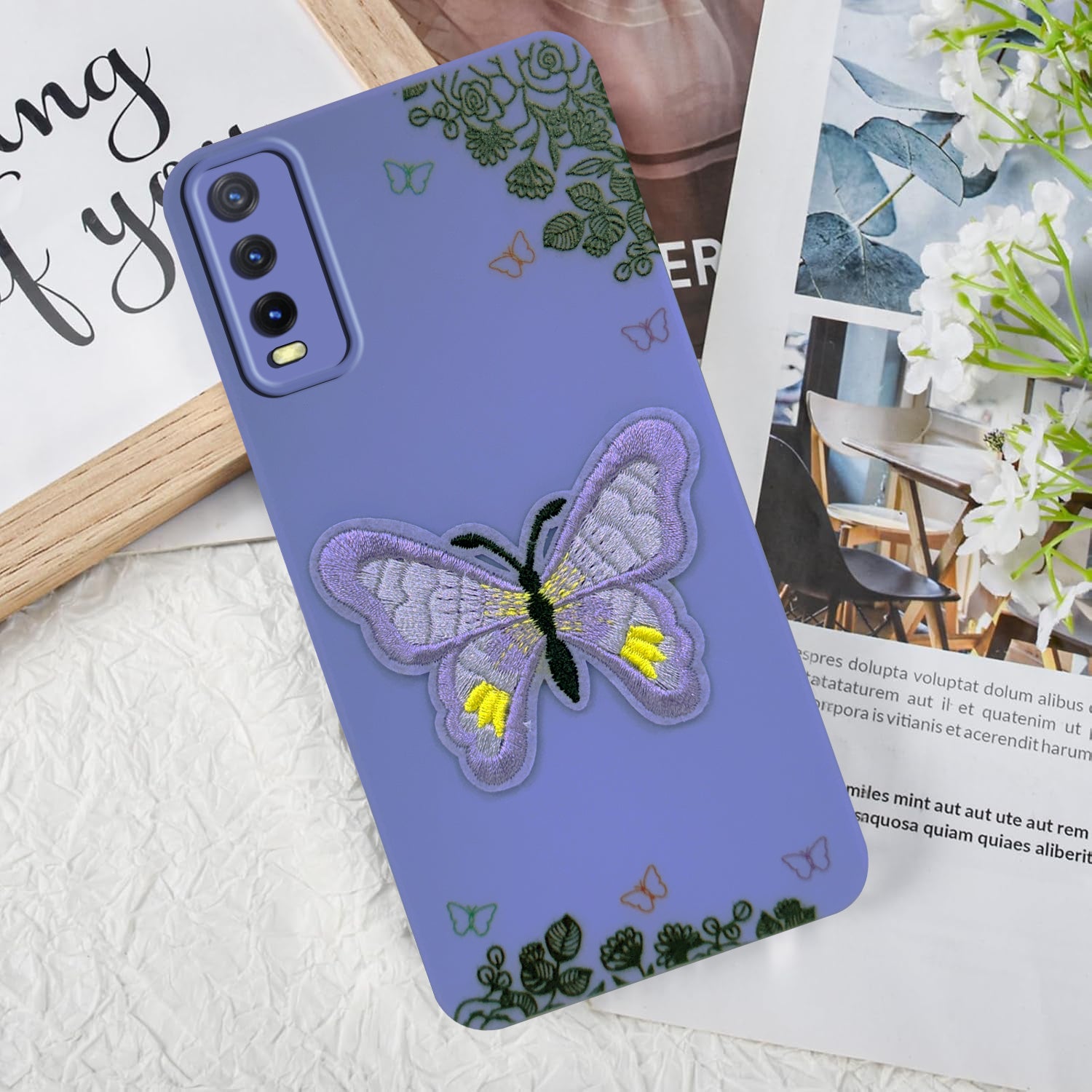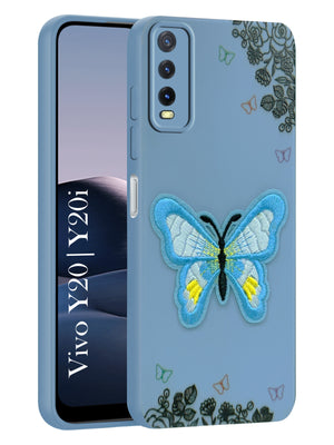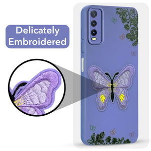 For Vivo Y20 | Y20i Back Cover Case (Soft Butterfly Embroidery | Women Teen Girls | Camera Protection| Matte Silicone)