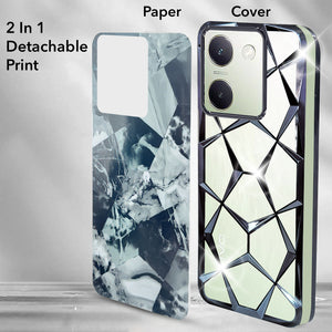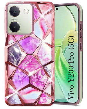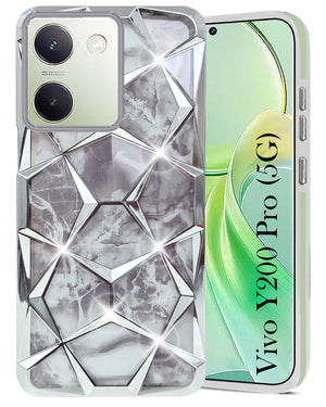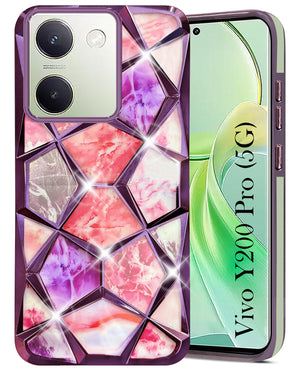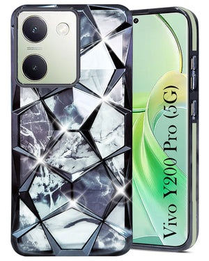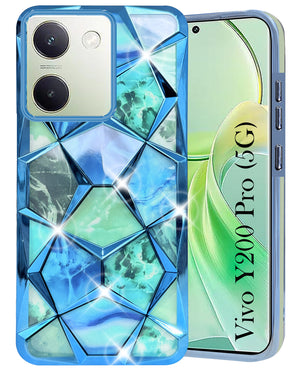 For Vivo Y200 Pro 5G Back Cover Case ( Dual Design Glitter Sparkle and Detachable Diamond Print Case | Soft and Flexible)