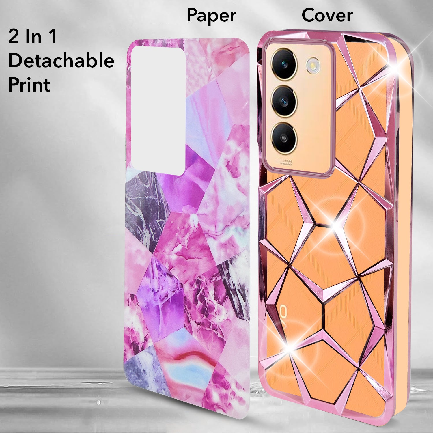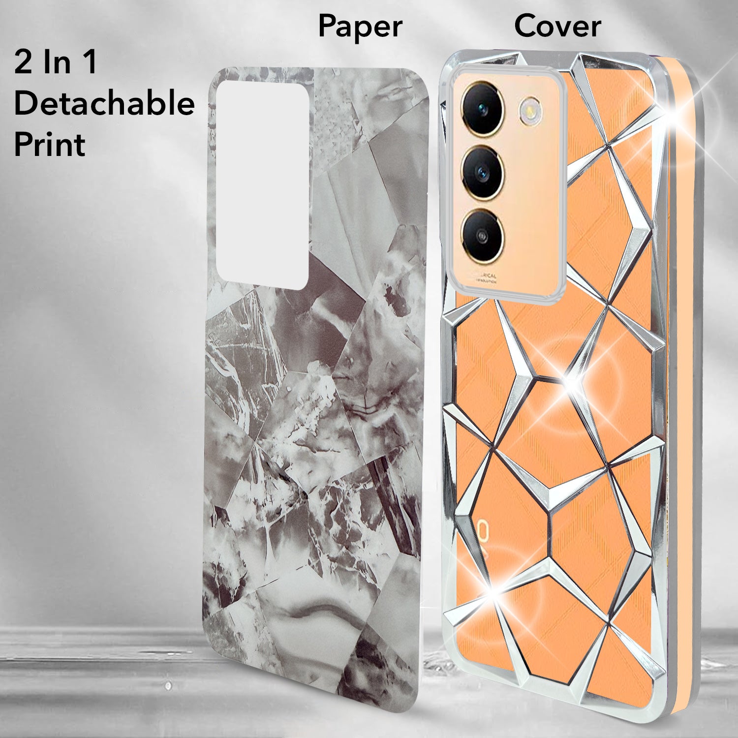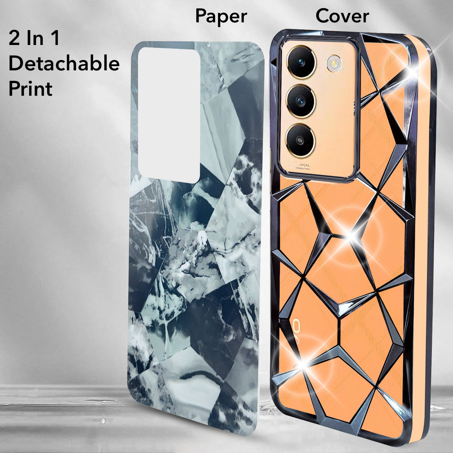 For Vivo Y200e Back Cover Case (Dual Design Glitter Sparkle and Detachable Diamond Print Case | Soft and Flexible)