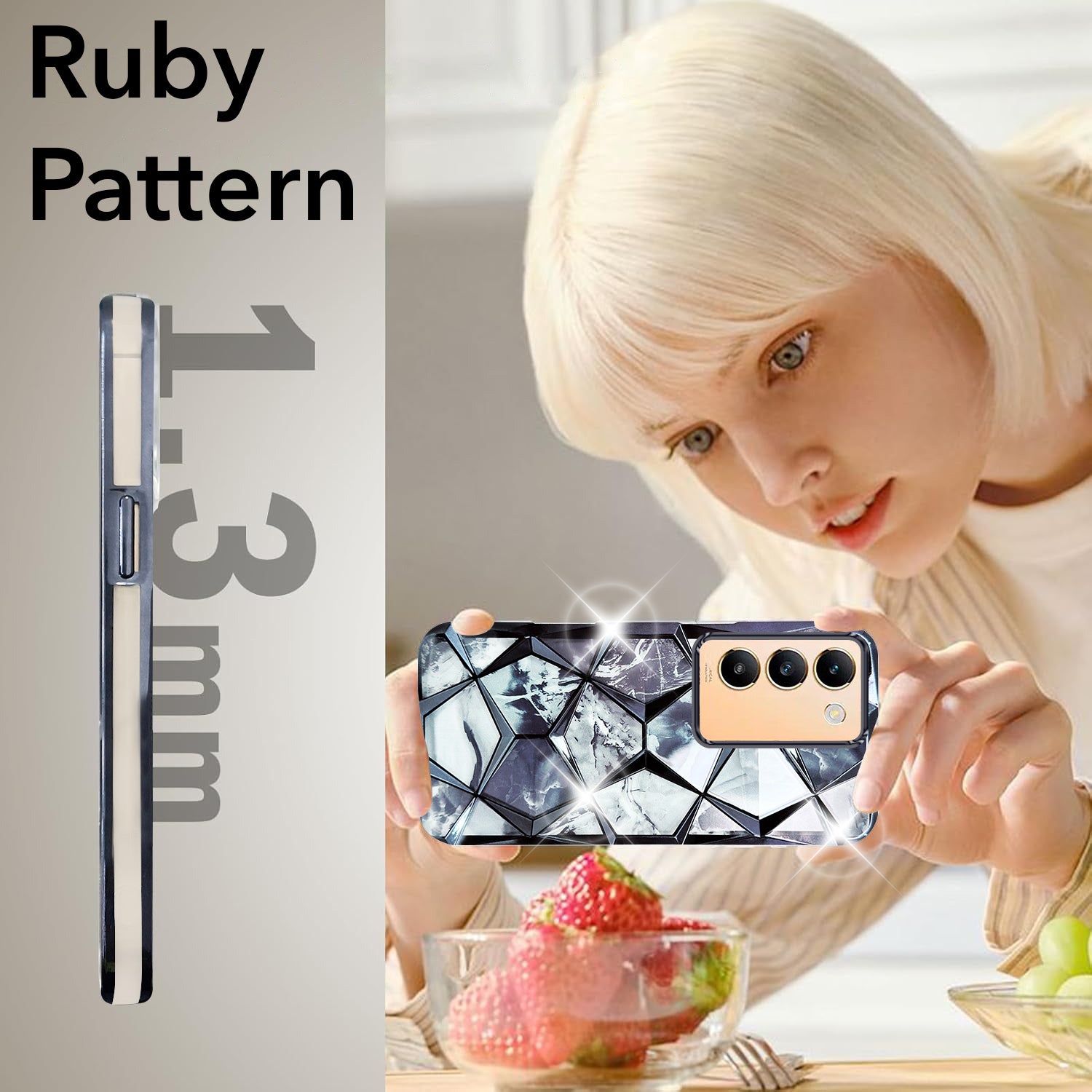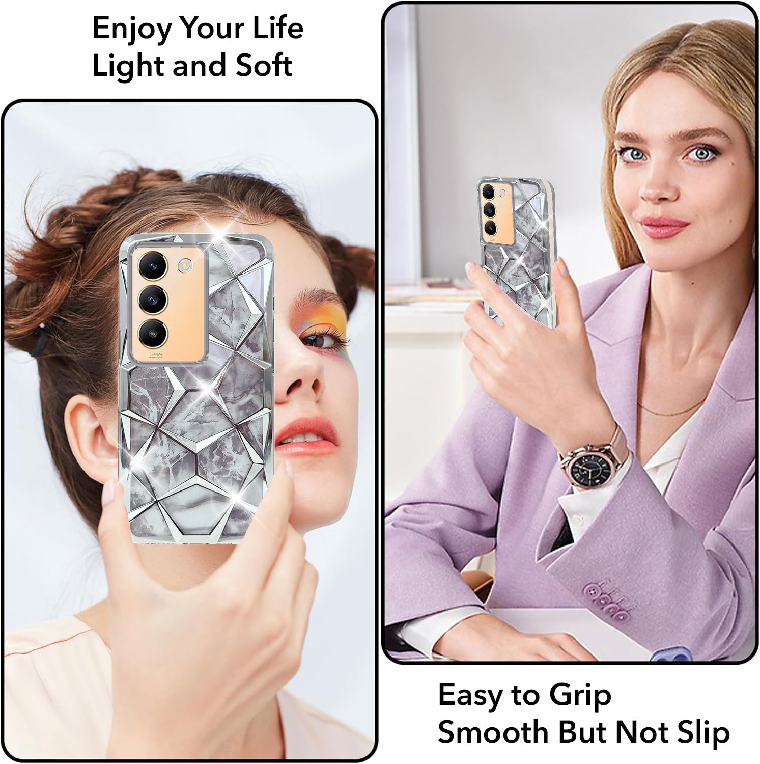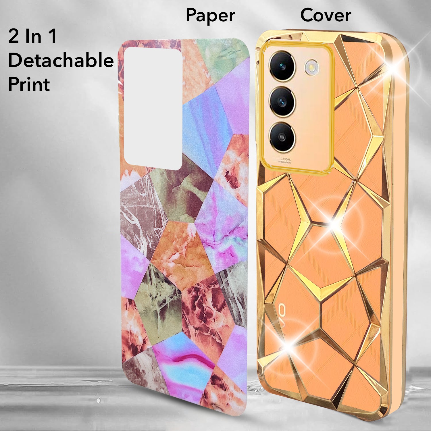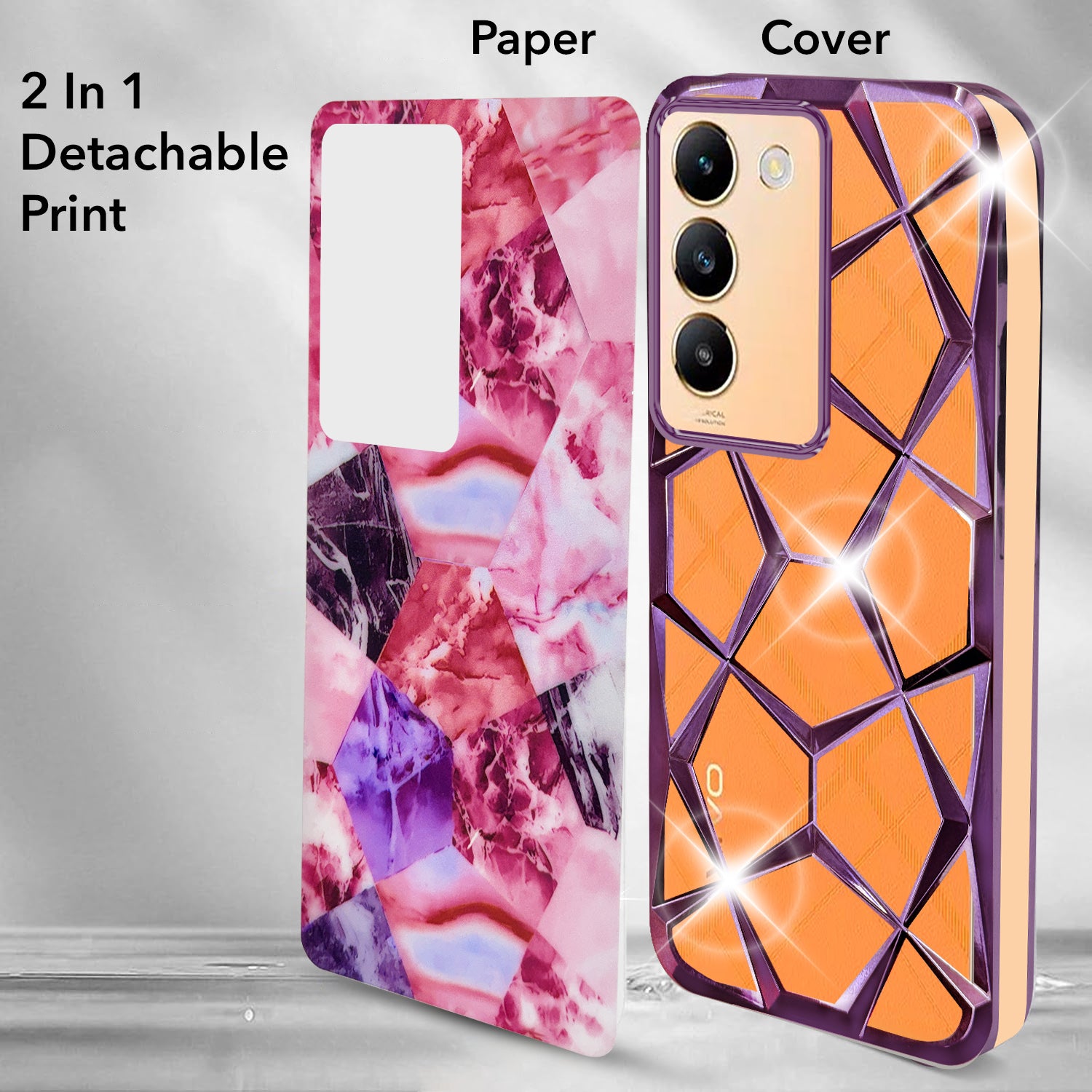 For Vivo Y200e Back Cover Case (Dual Design Glitter Sparkle and Detachable Diamond Print Case | Soft and Flexible)