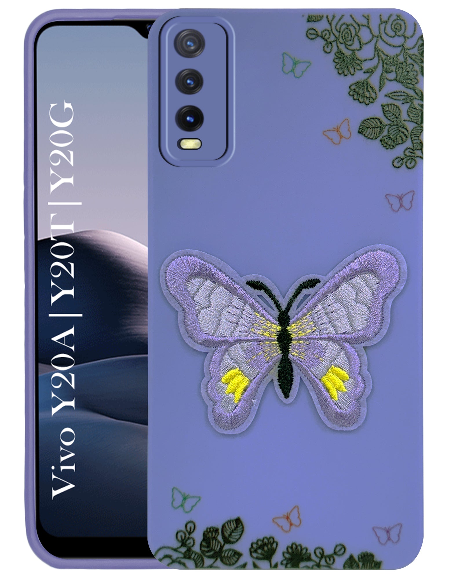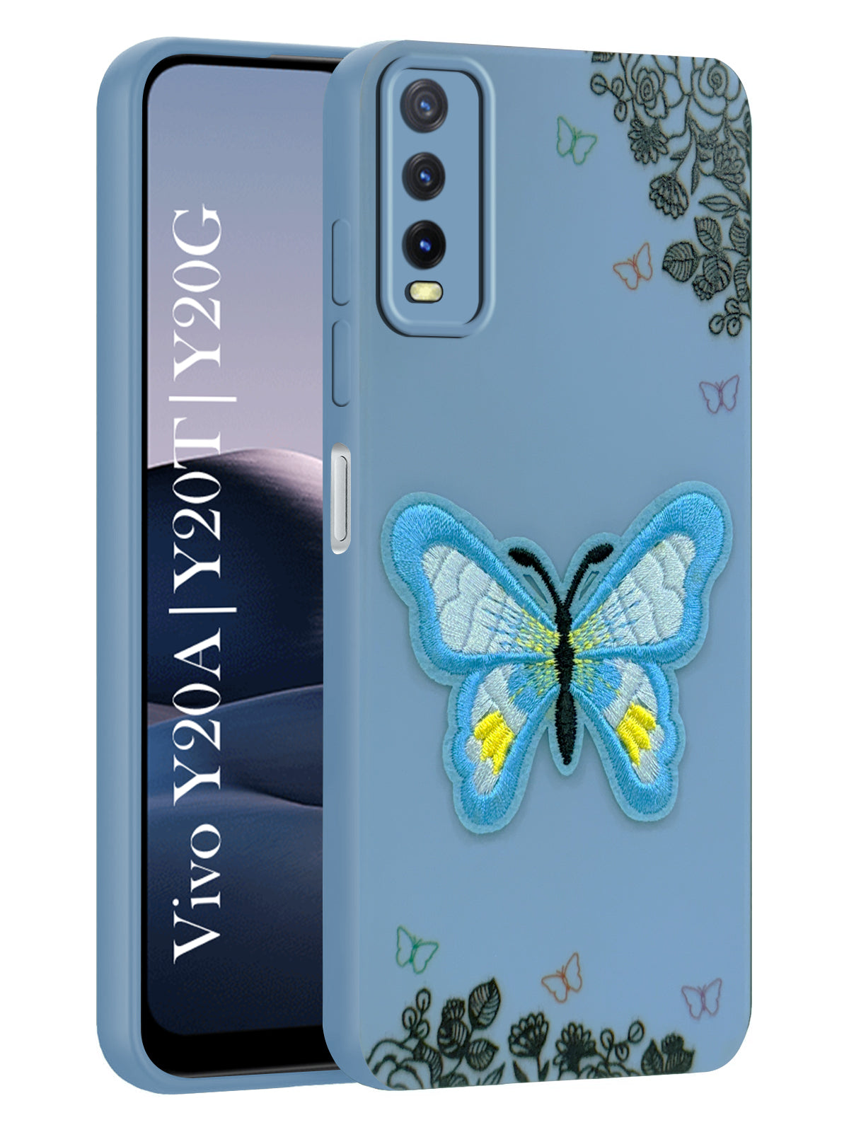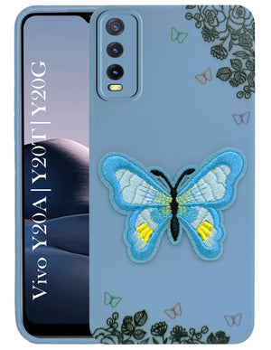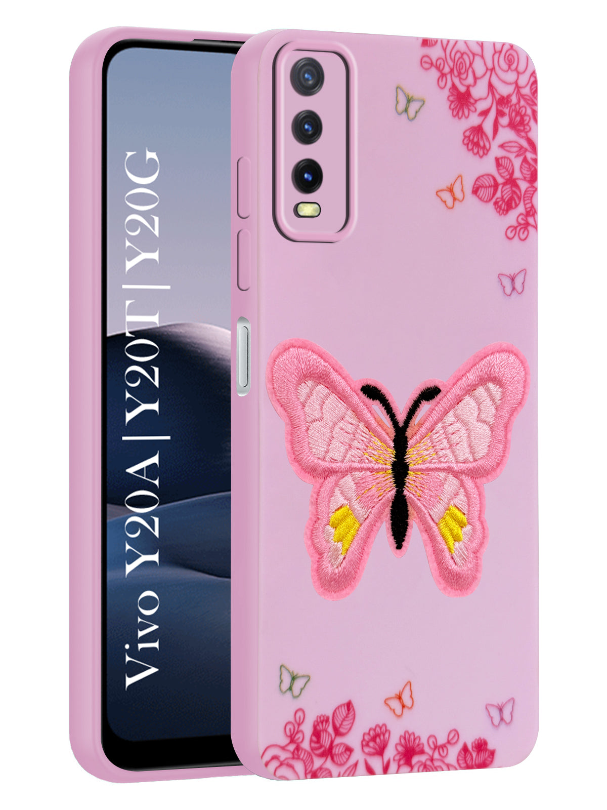 For Vivo Y20A | Y20T | Y20G Back Cover Case (Soft Butterfly Embroidery | Women Teen Girls | Camera Protection| Matte Silicone)