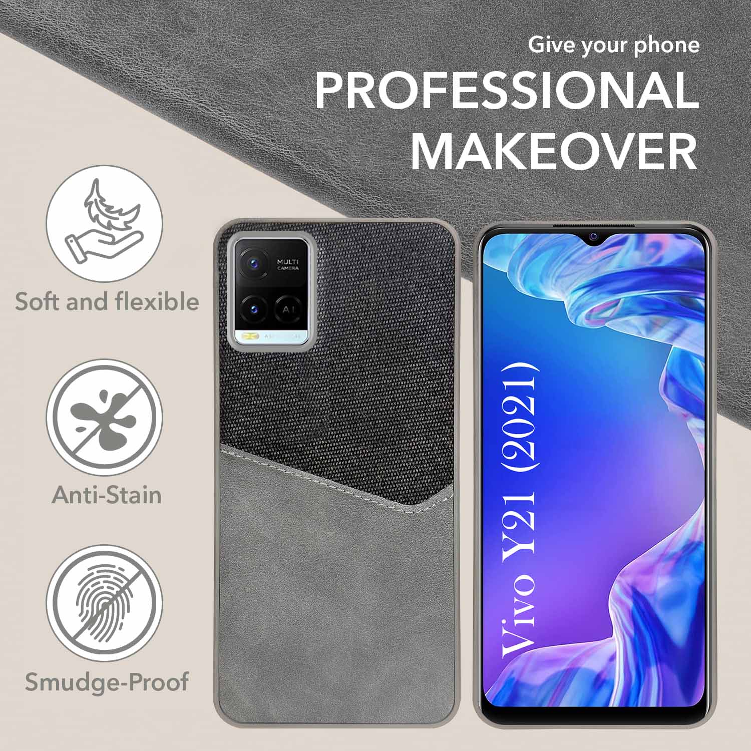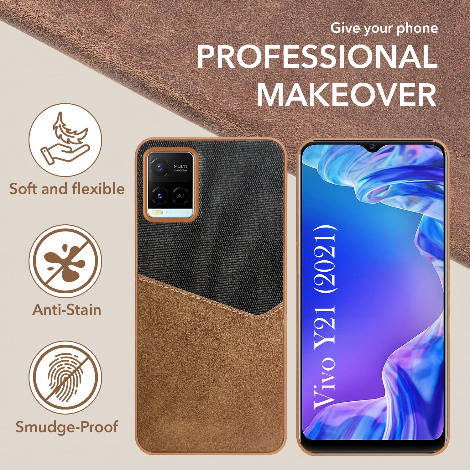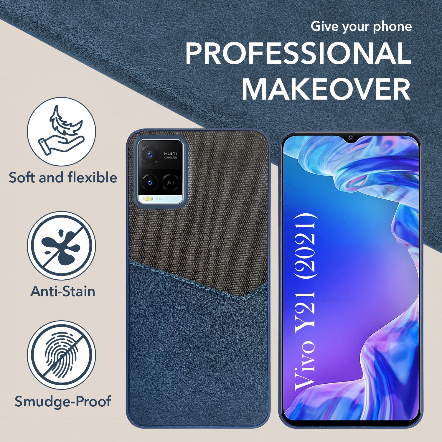 For Vivo Y21 2021 Back Cover Case (Dual PU Leather Stitch | Professional Minimalist | Soft and Flexible)