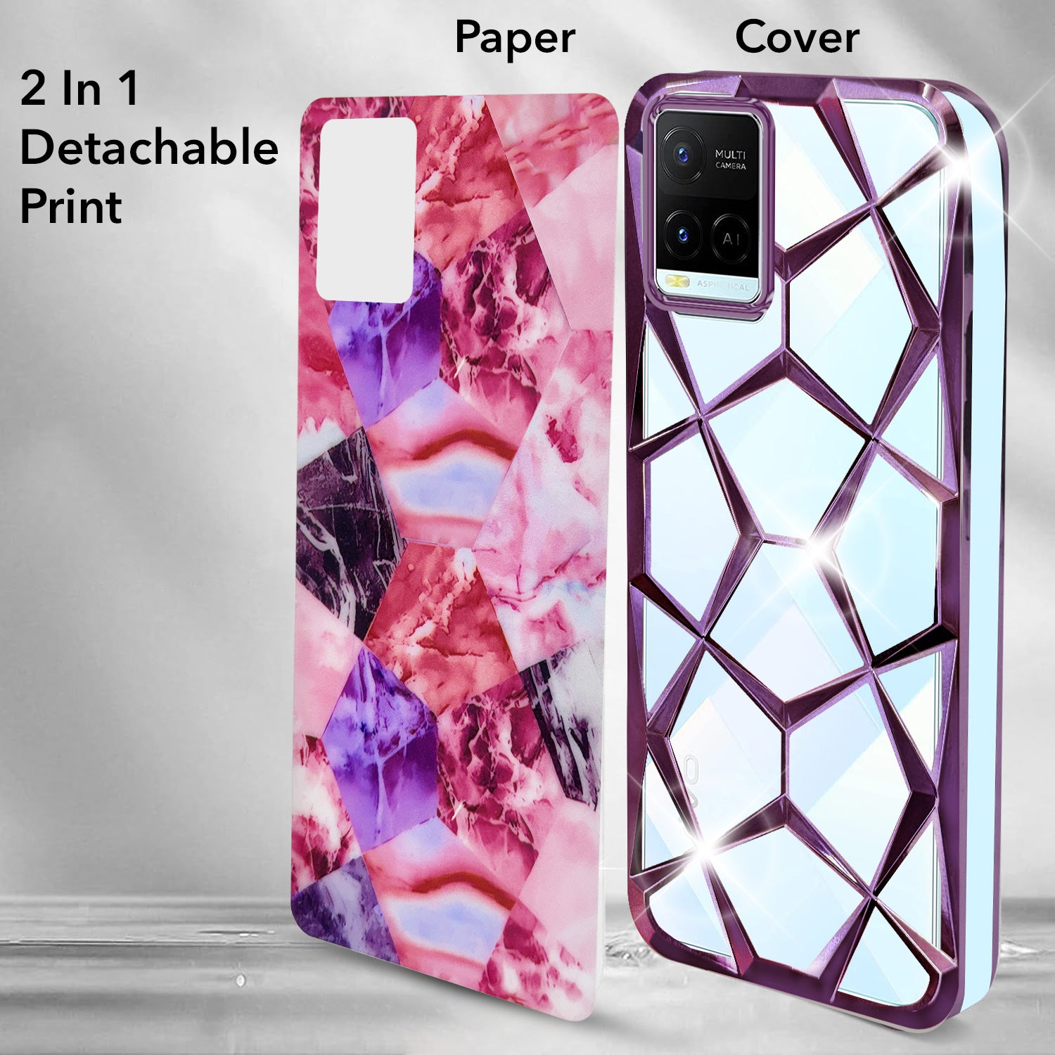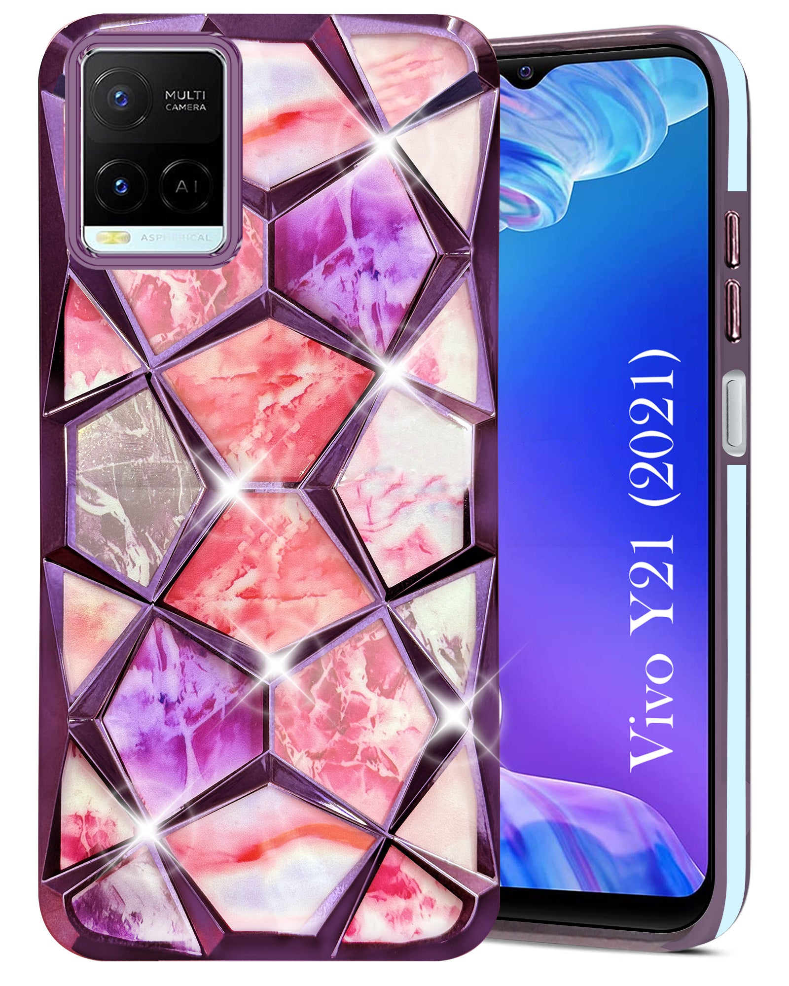 For Vivo Y21 2021 Back Cover Case (Dual Design Glitter Sparkle and Detachable Diamond Print Case | Soft and Flexible)