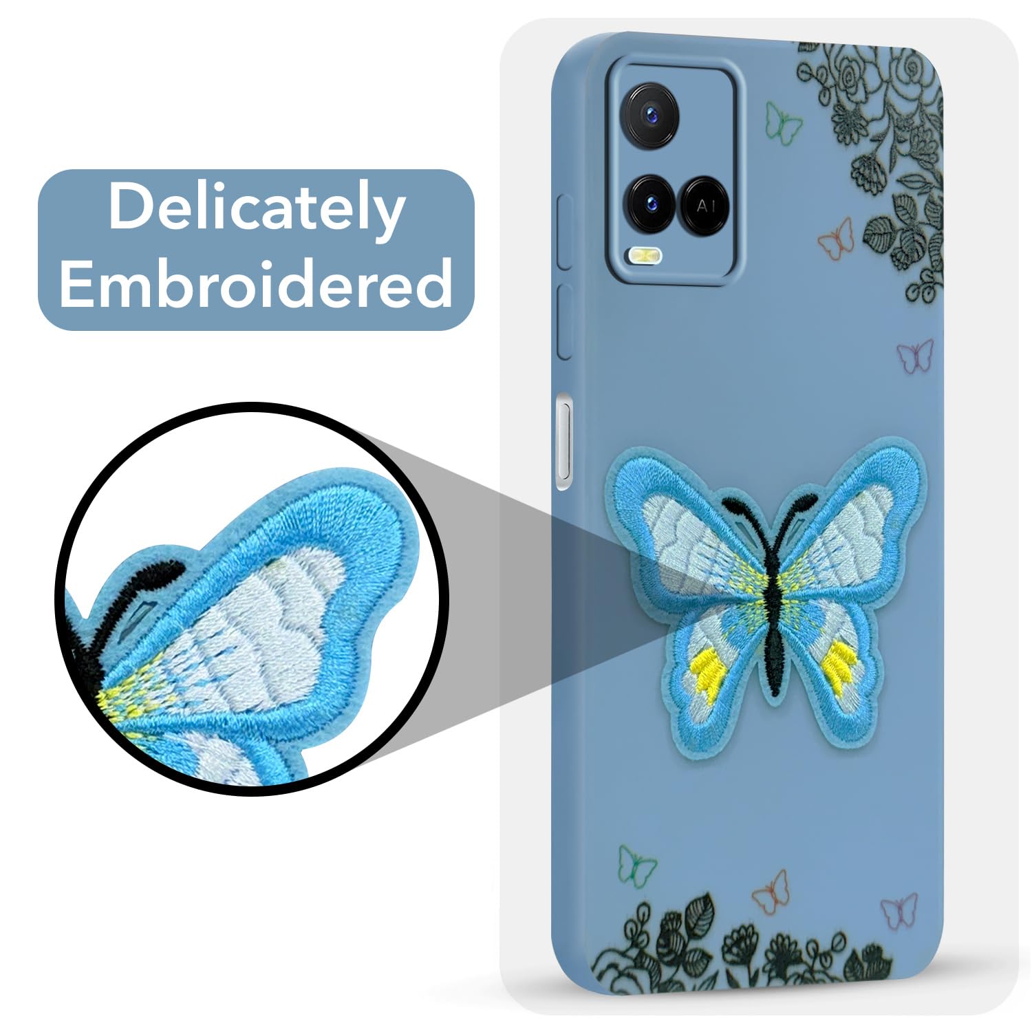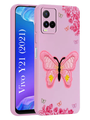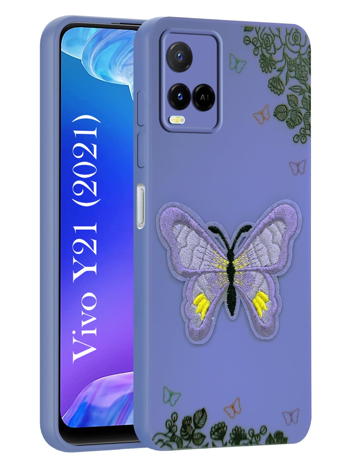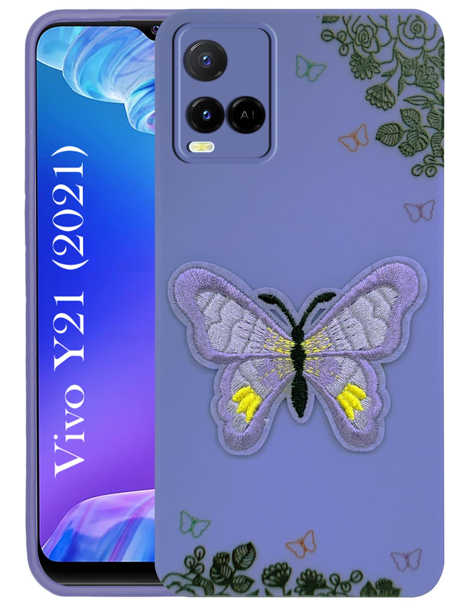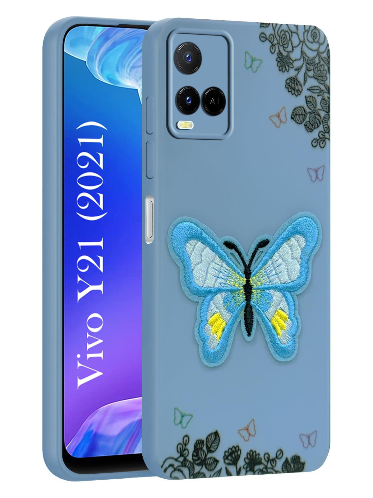 For Vivo Y21 2021 Back Cover Case (Soft Butterfly Embroidery | Women Teen Girls | Camera Protection| Matte Silicone)