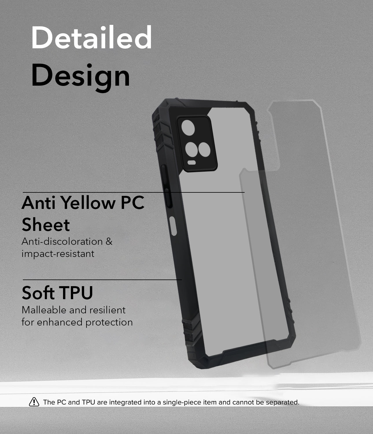 For Vivo Y21 2021 Back Cover Case (Ultimate Shockproof Bumpers | Anti Yellow | Rugged Armor | Hybrid PC | Black )