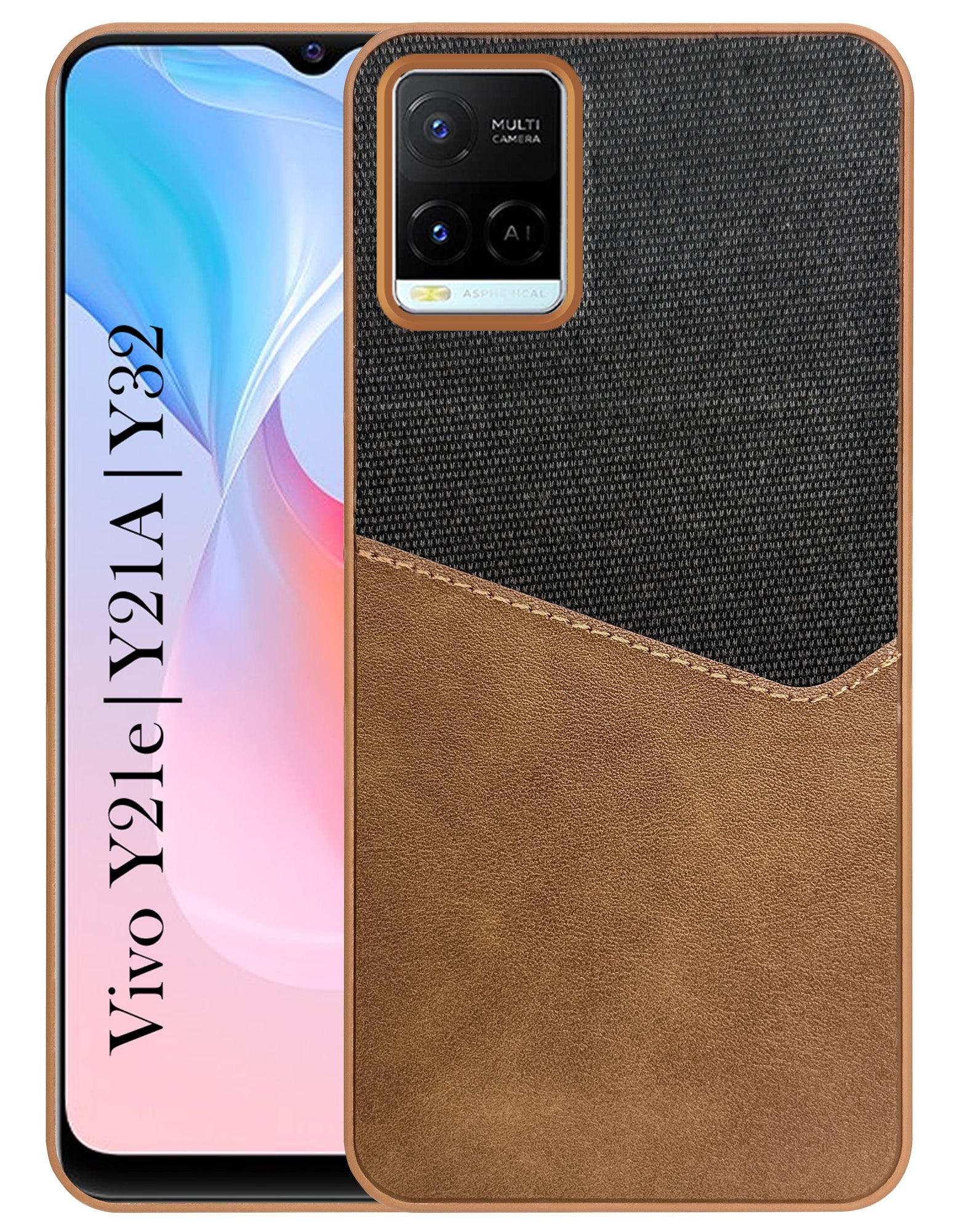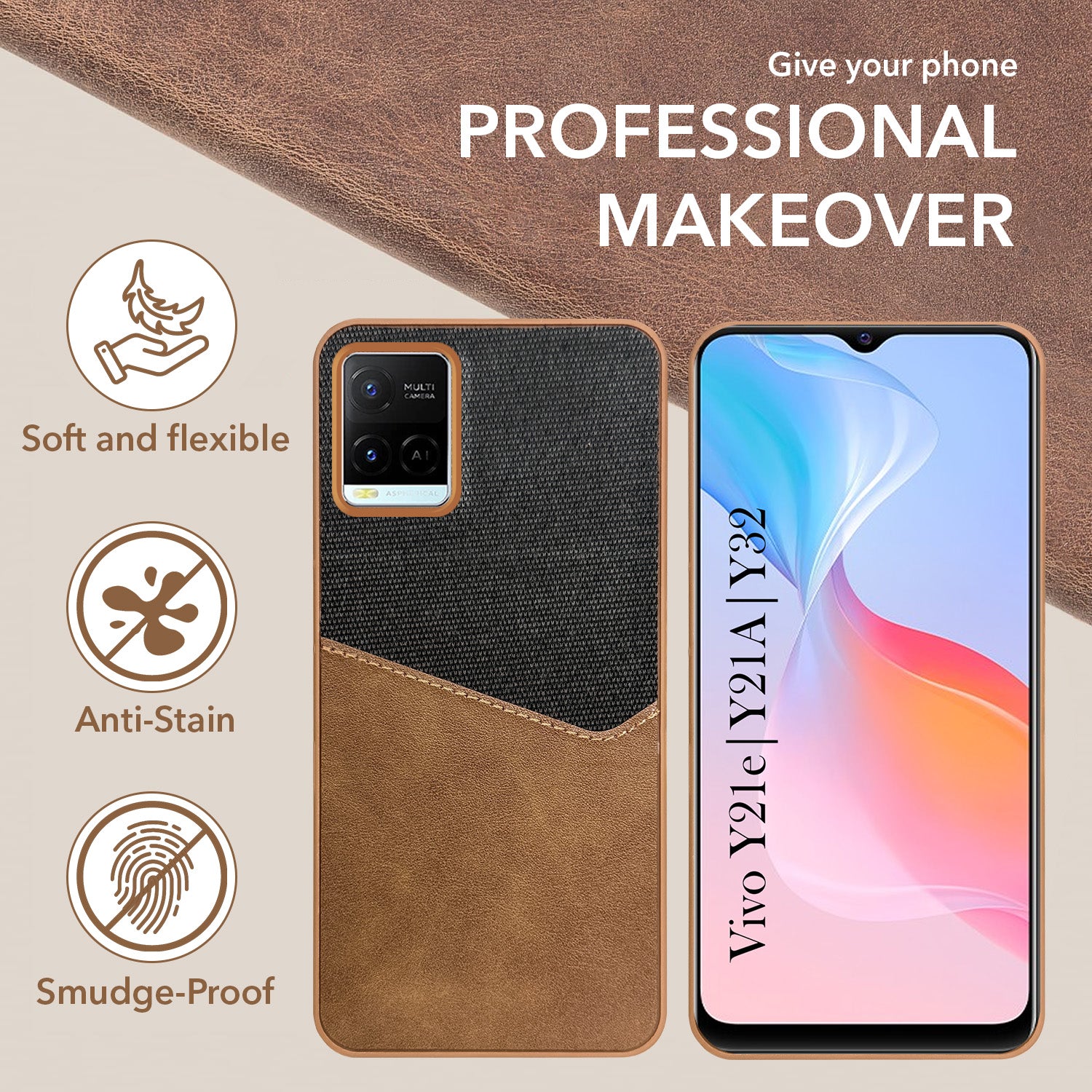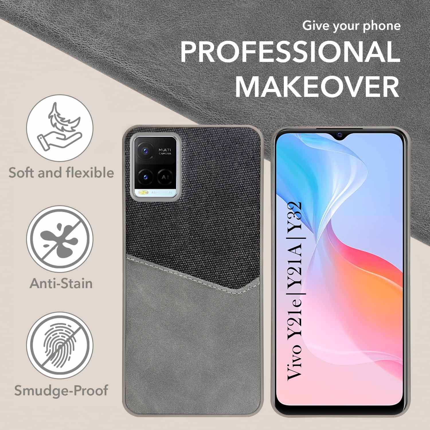For Vivo Y21e | Vivo Y21A | Vivo Y32 Back Cover Case (Dual PU Leather Stitch | Professional Minimalist | Soft and Flexible)