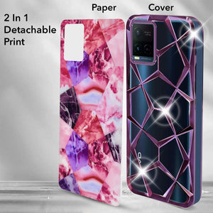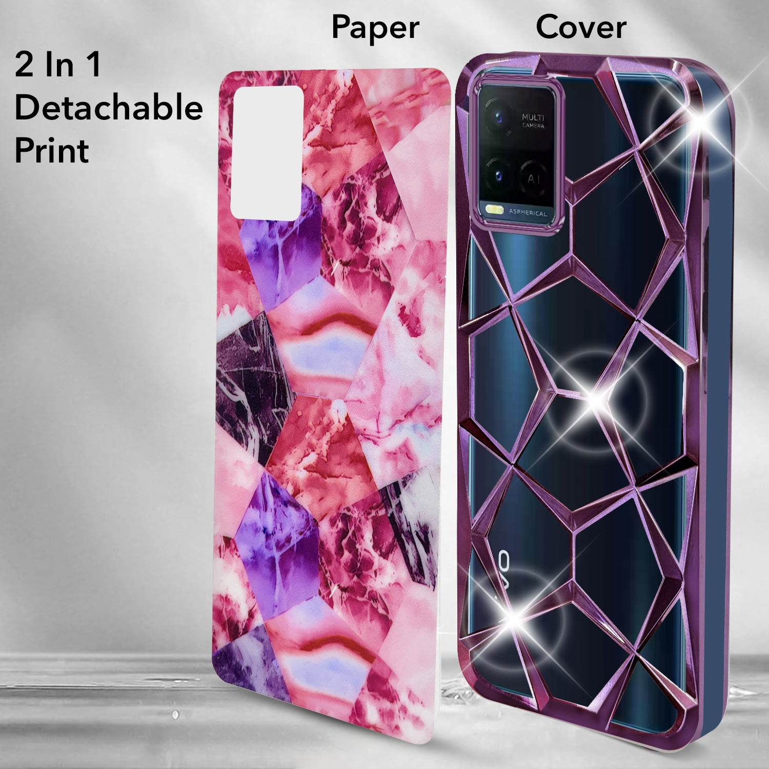 For Vivo Y21e | Vivo Y21A | Vivo Y32 Back Cover Case (Dual Design Glitter Sparkle and Detachable Diamond Print Case | Soft and Flexible)