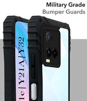 For Vivo Y21e | Vivo Y21A | Vivo Y32 Back Cover Case(Ultimate Shockproof Bumpers | Anti Yellow | Rugged Armor | Hybrid PC | Black
