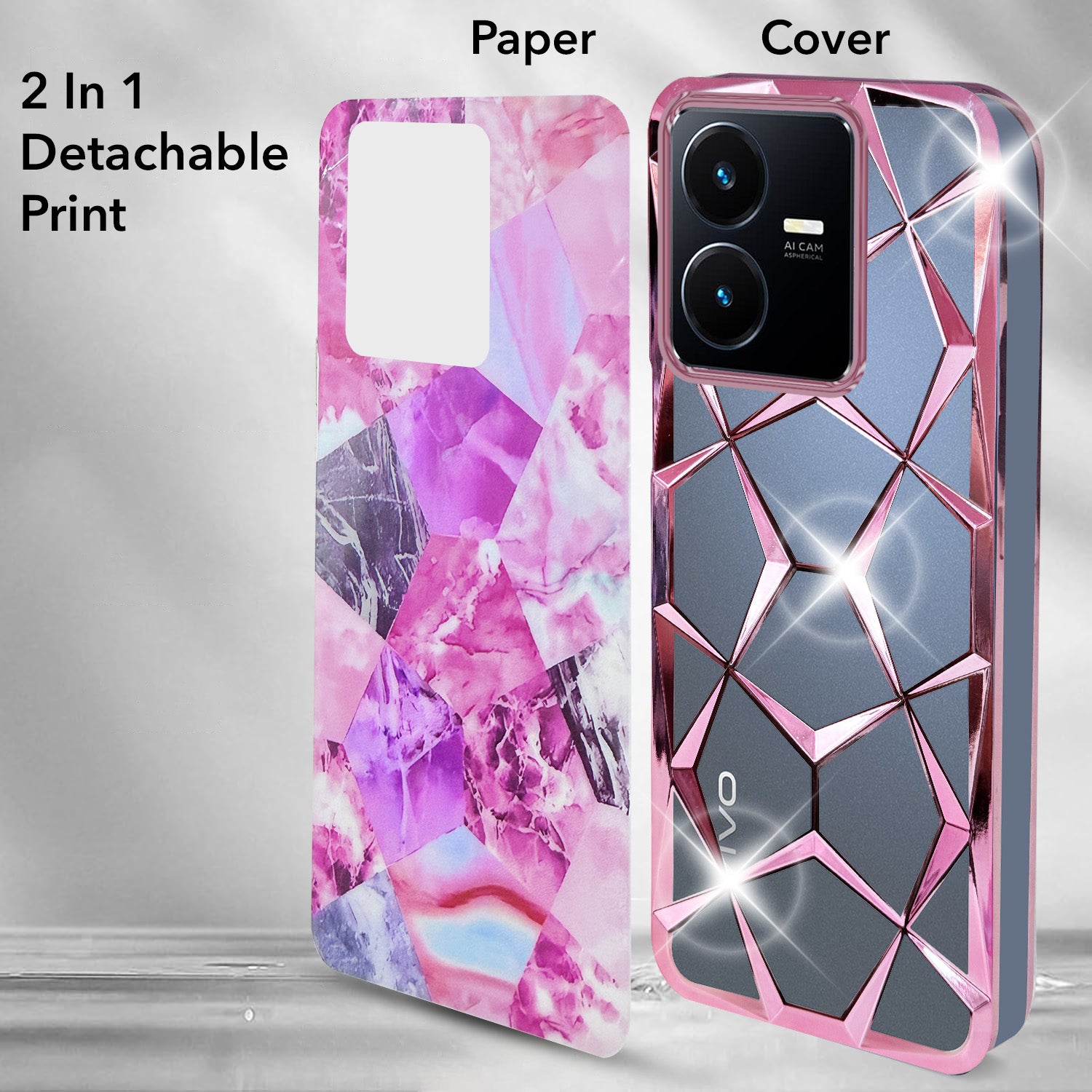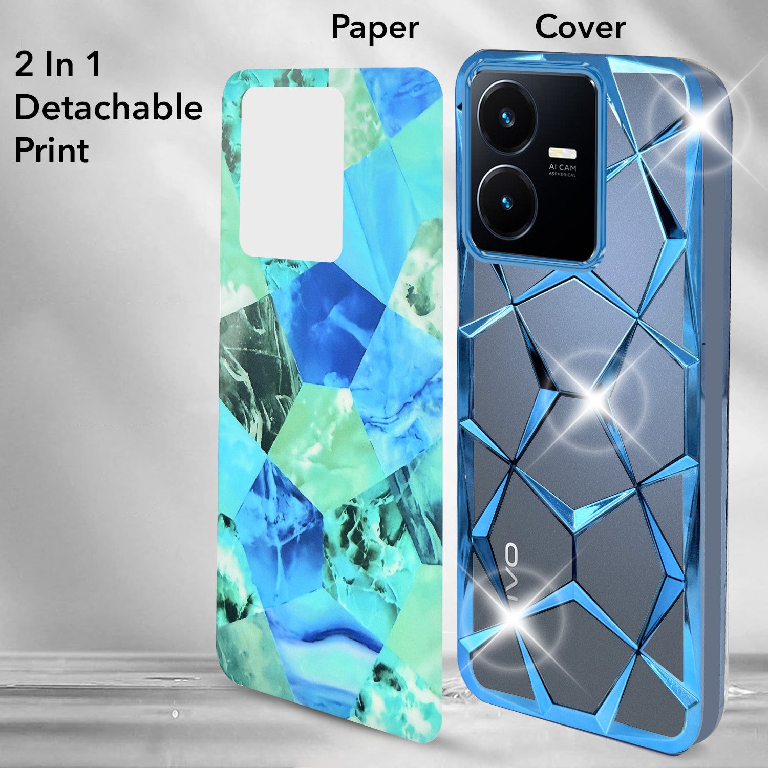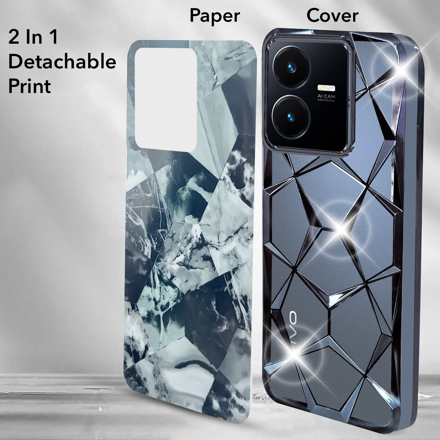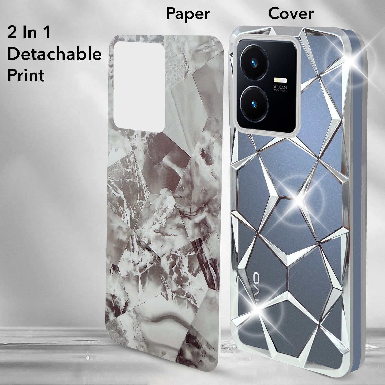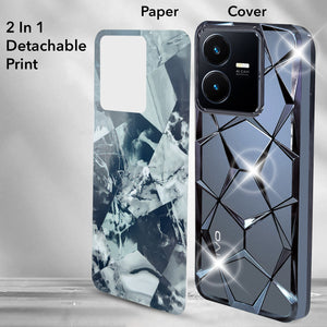 For VIVO Y22 | VIVO Y22s Back Cover Case (Dual Design Glitter Sparkle and Detachable Diamond Print Case | Soft and Flexible)