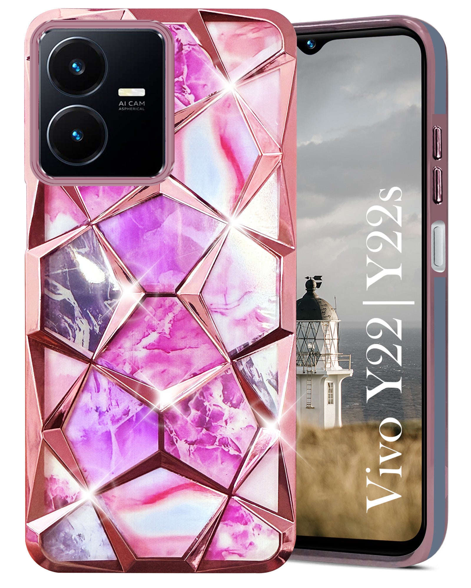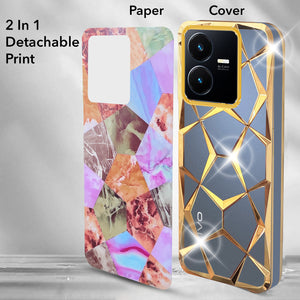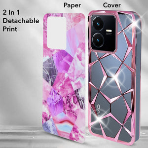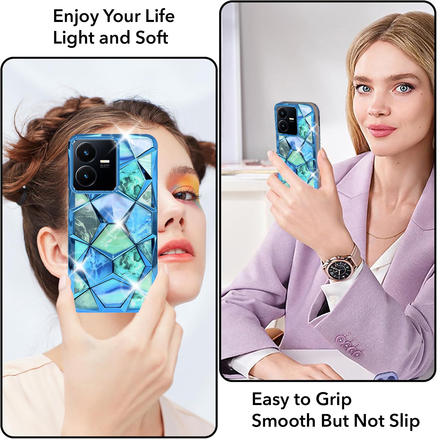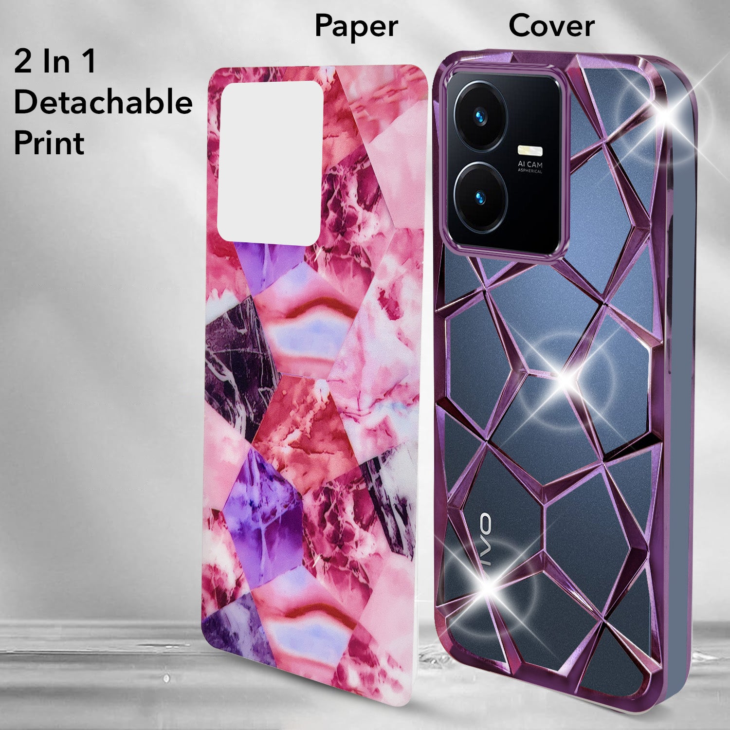 For VIVO Y22 | VIVO Y22s Back Cover Case (Dual Design Glitter Sparkle and Detachable Diamond Print Case | Soft and Flexible)