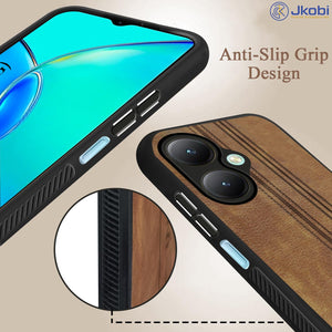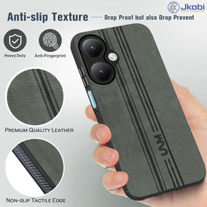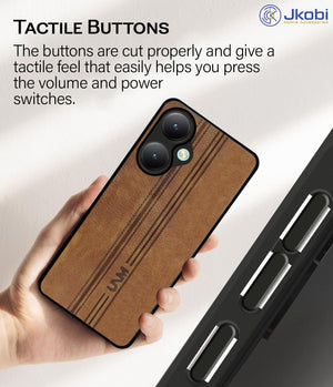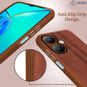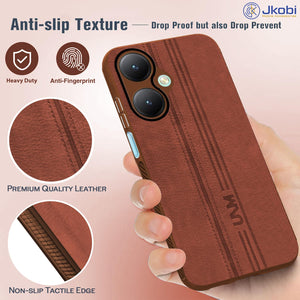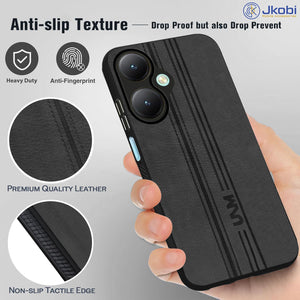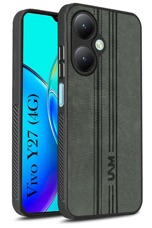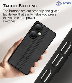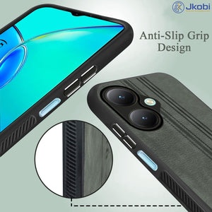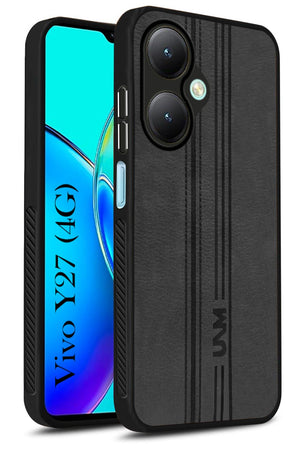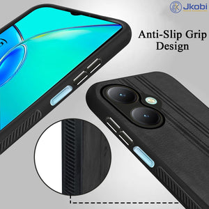 For Vivo Y27 Back Cover Case ( Leather Finish | Anti Skid Side Grip | Soft Touch | Minimalist Design | Black )