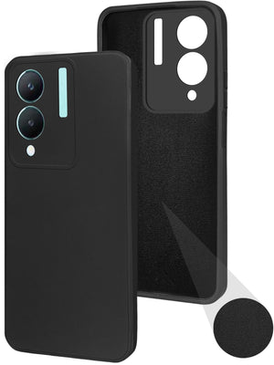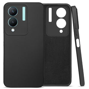 For VIVO Y28 5G Back Cover Case (Matte Finish Silicone with Inside Fiber Cloth |Black)
