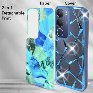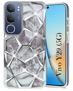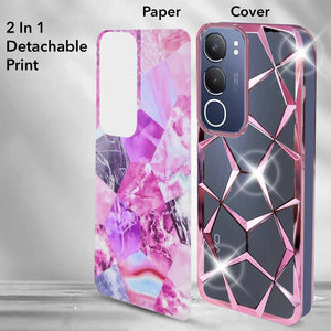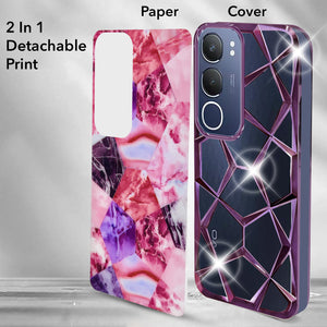 For Vivo Y29 Back Cover Case Girls (Dual Design Glitter Sparkle and Detachable Diamond Print Case | Soft and Flexible)