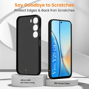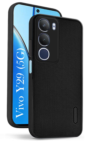 For Vivo Y29 Back Cover Case (Textured Grip Design | Micro-Fiber Cloth Inside | Slim and Light Weight | Soft Touch and Feel | Black)