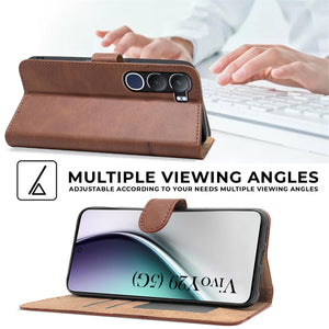 For vivo Y29 Flip Cover Case ( Stitched Leather with Magnetic Closure)
