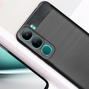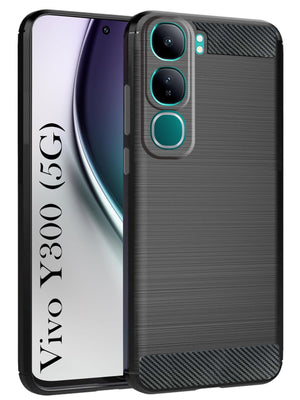 For Vivo Y300 Back Cover Case ( Hybrid Armor Case | Carbon Fiber Shockproof | Soft and Flexible | Black )