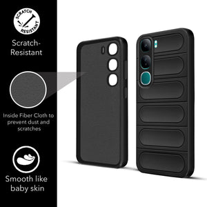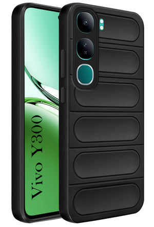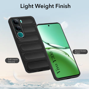 For Vivo Y300 Back Cover Case (Matte Liquid Silicone | Professional Micro-Fiber Cloth Inside | Camera Protection Ring | Wave Black)