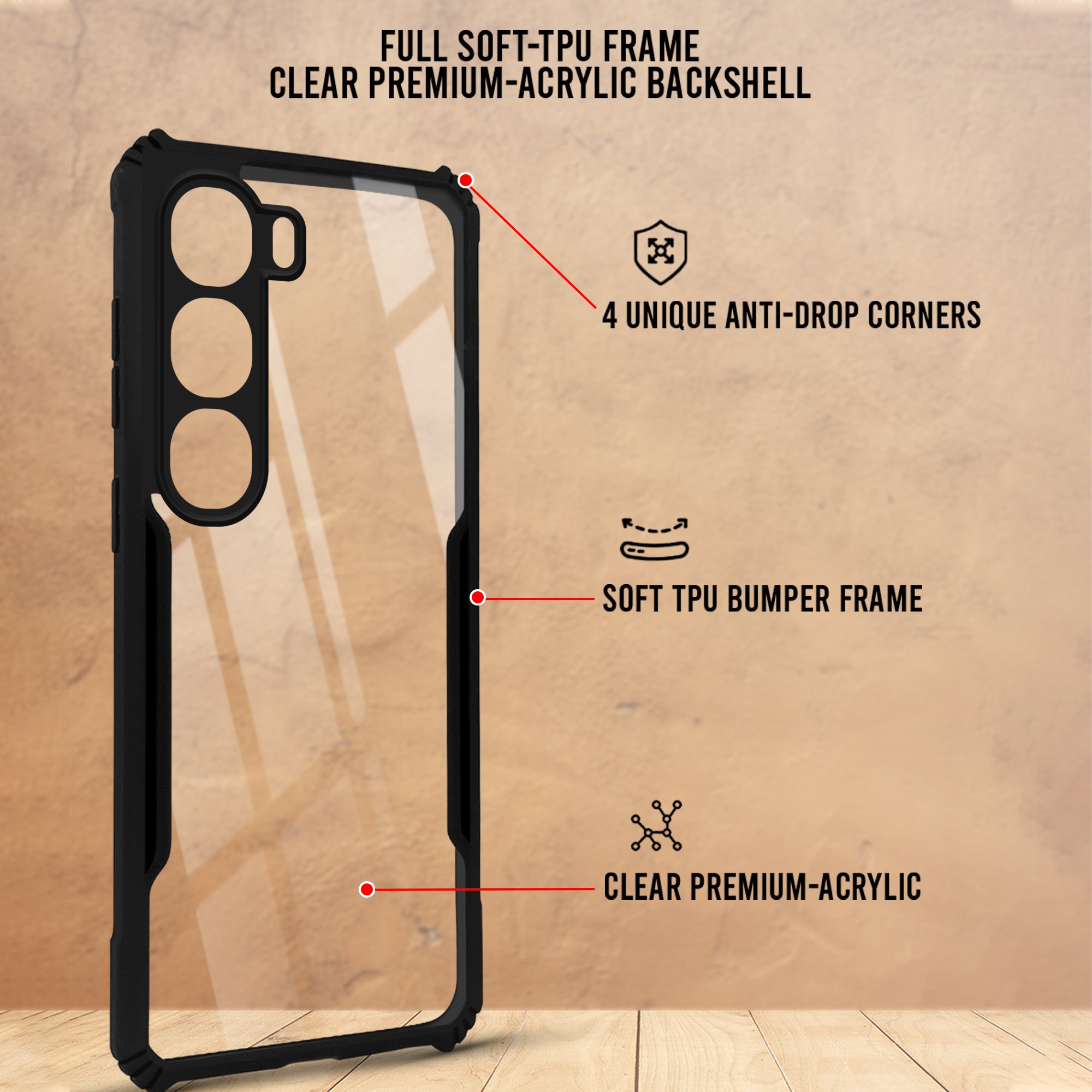 For Vivo Y300 Back Cover Case ( Shockproof with Polycarbonate Clear Panel | Professional Black)