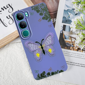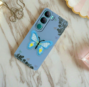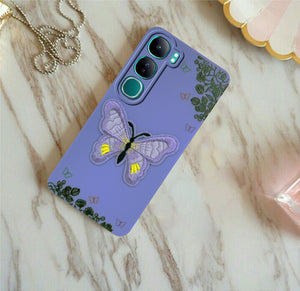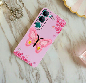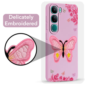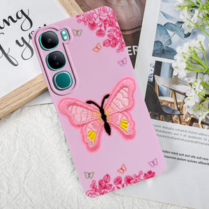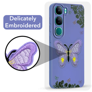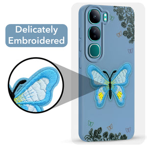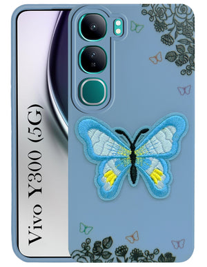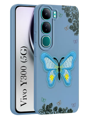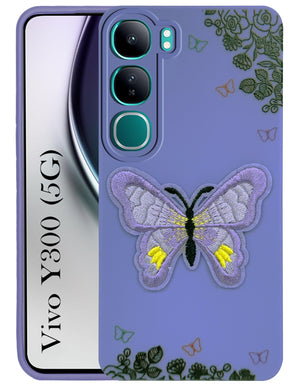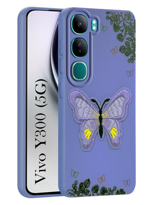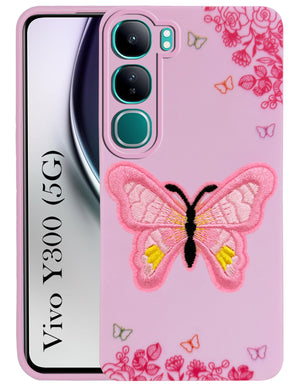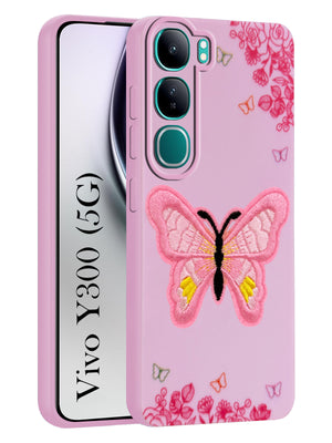 For Vivo Y300 Back Cover Case (Soft Butterfly Embroidery | Women Teen Girls | Camera Protection| Matte Silicone)