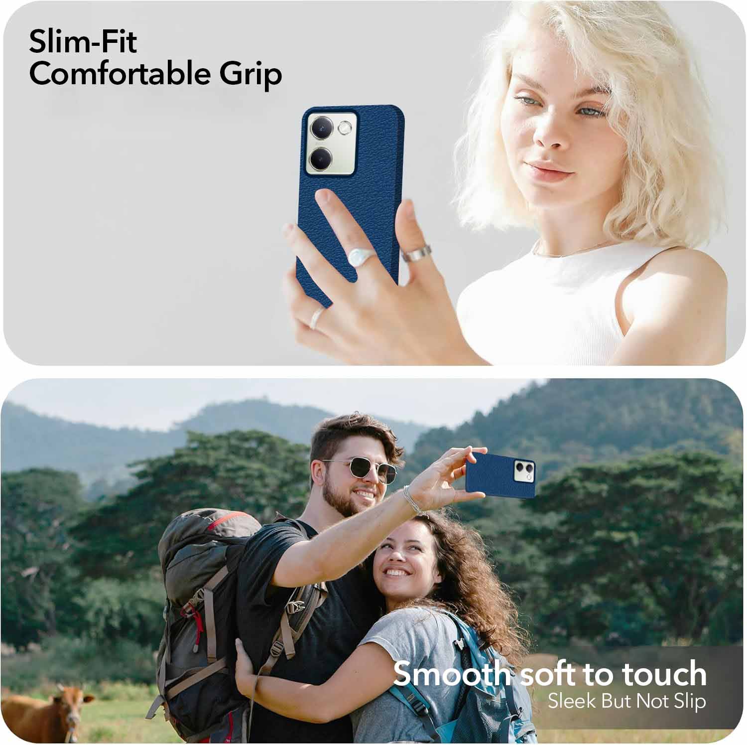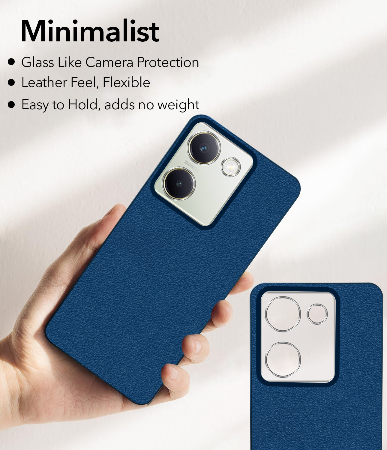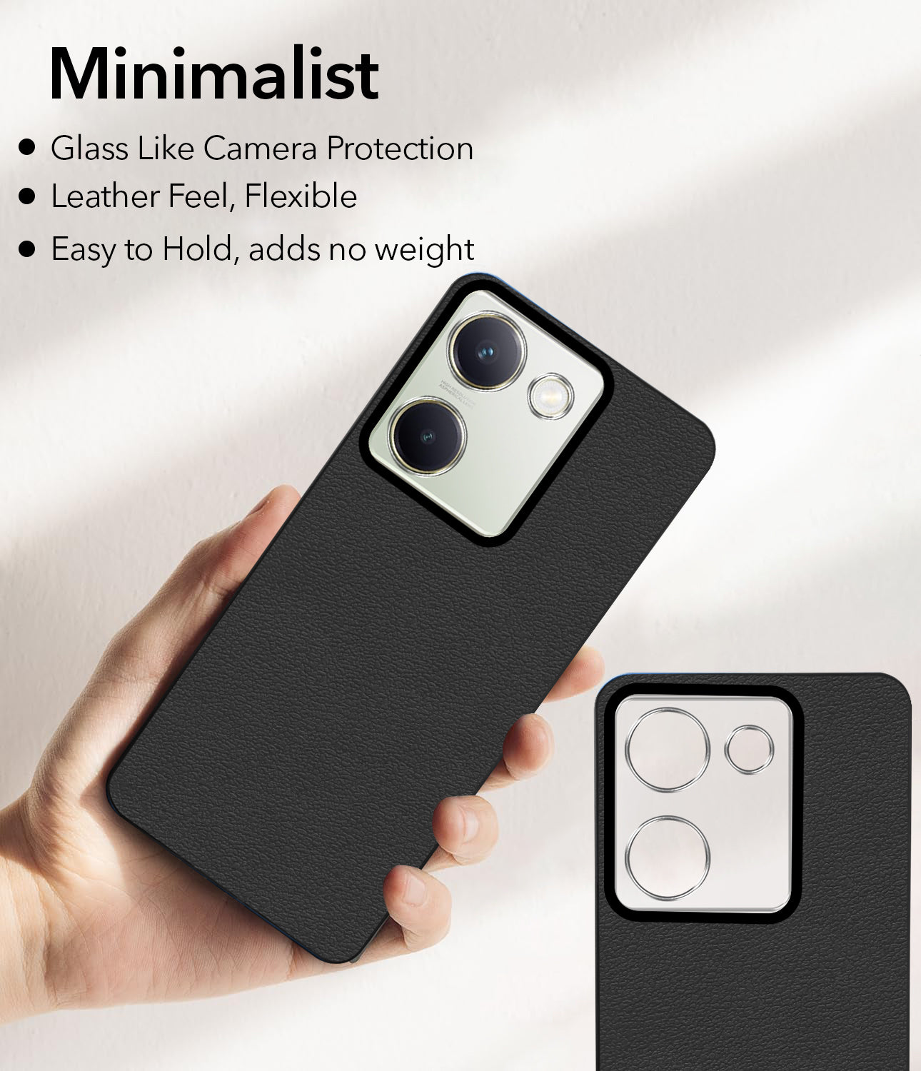 For Vivo Y300 Plus Back Cover Case (Glass Like Camera Protection | Leather Feel | Minimalist Professional Grip)